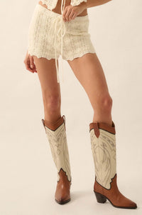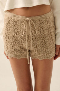 Twist and Shout Crochet Knit Drawstring Shorts