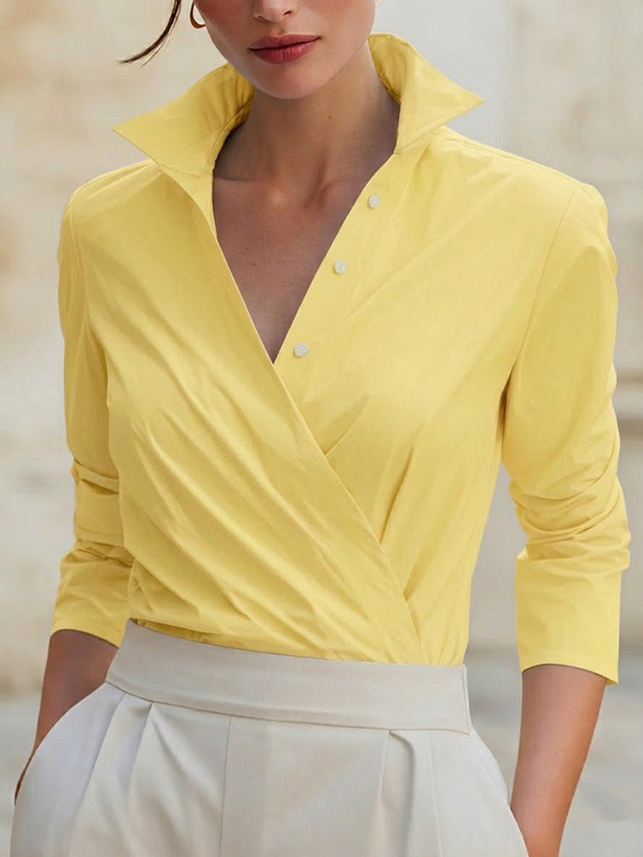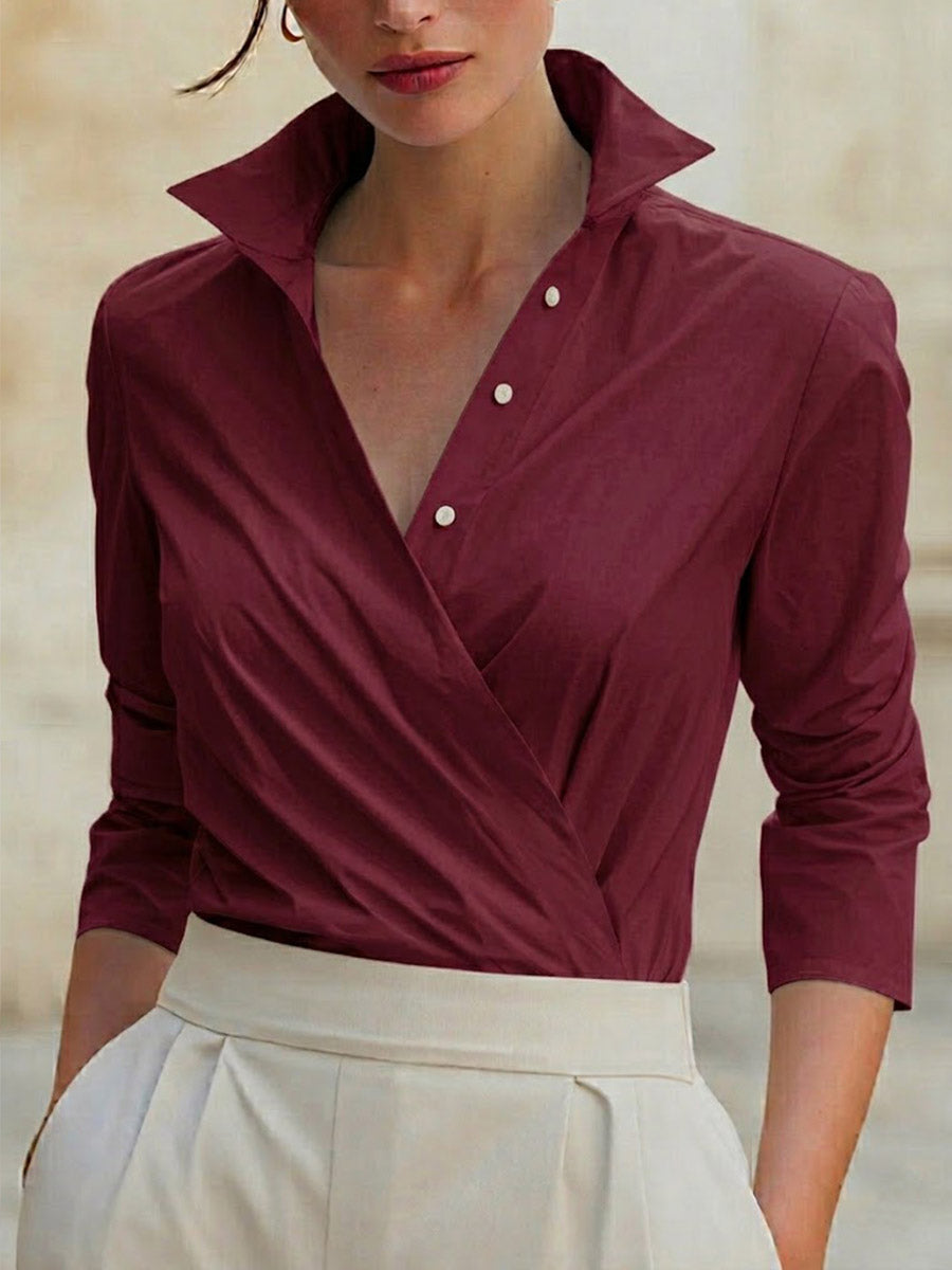 Women's Solid Color Stand Collar 3/4 Sleeve Casual Loose Cotton Shirt
