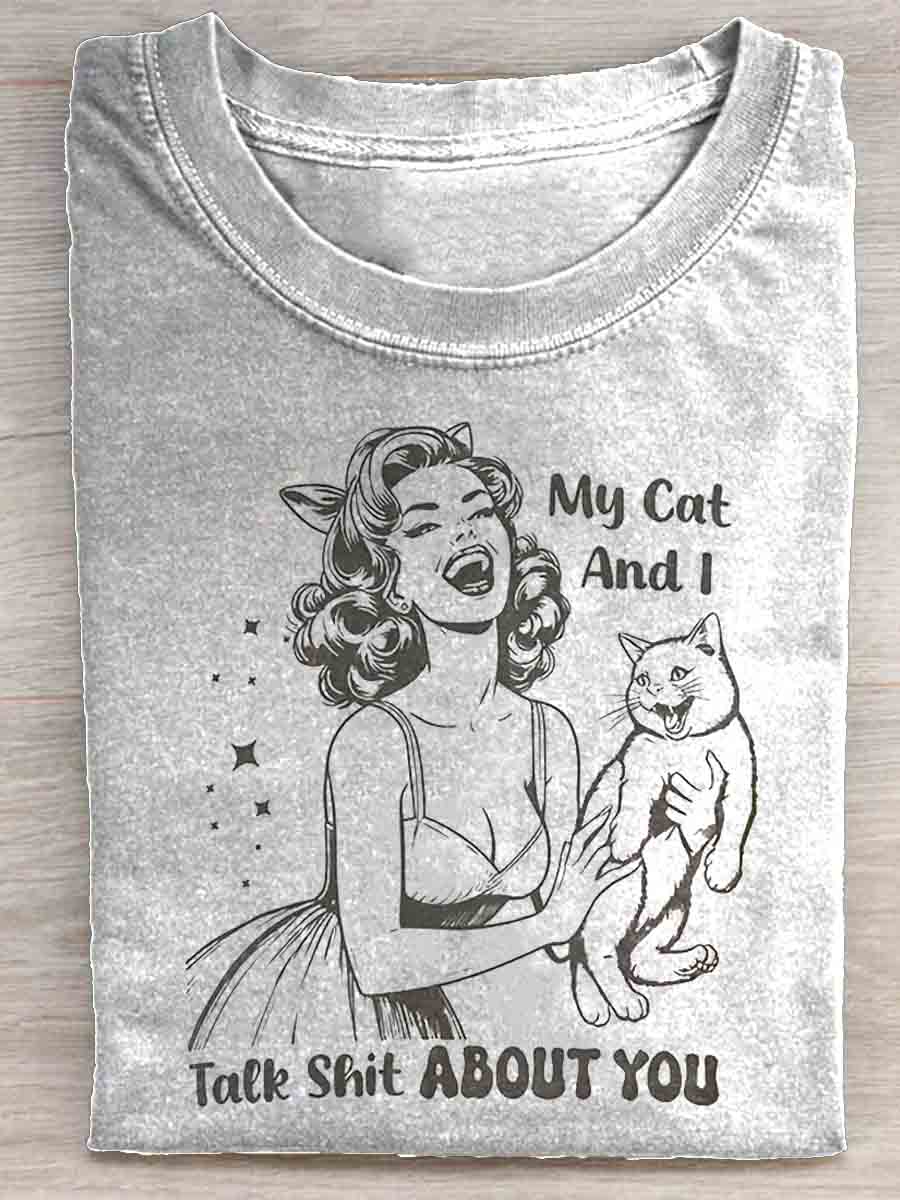 My Cat And I Talk Shit About You Funny Art Print T-shirt