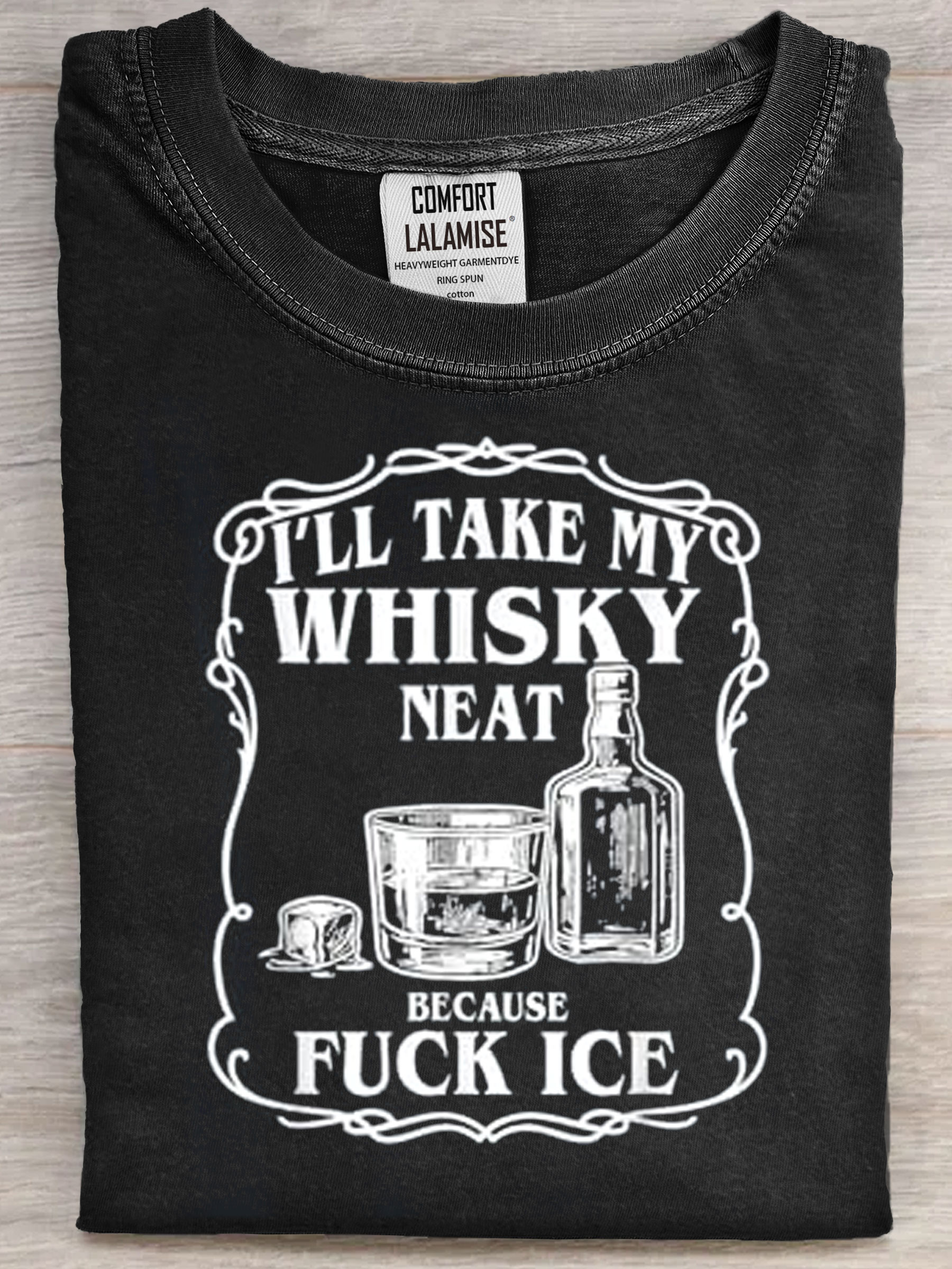 Whisky Neat Because Fuck Ice Art Print Casual Short Sleeve T-shirt