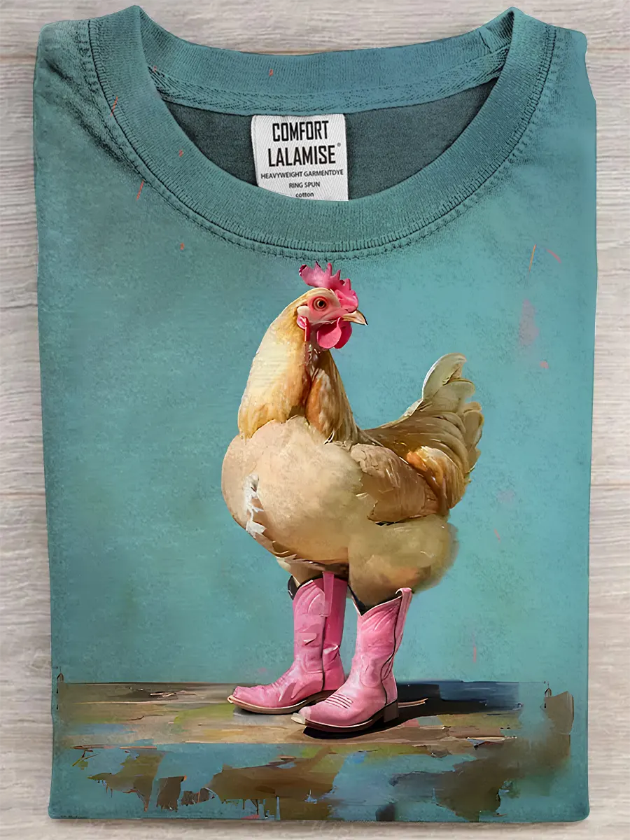 Retro Funny Rooster Art Print Casual Pure Cotton Short Sleeved T-shirt