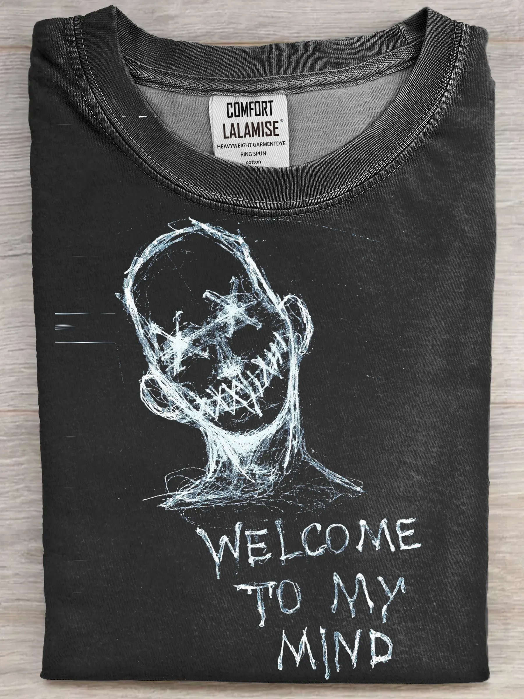 Welcome To My Mind Funny Dark Skull Art Print Casual Cotton Short Sleeve T-shirt