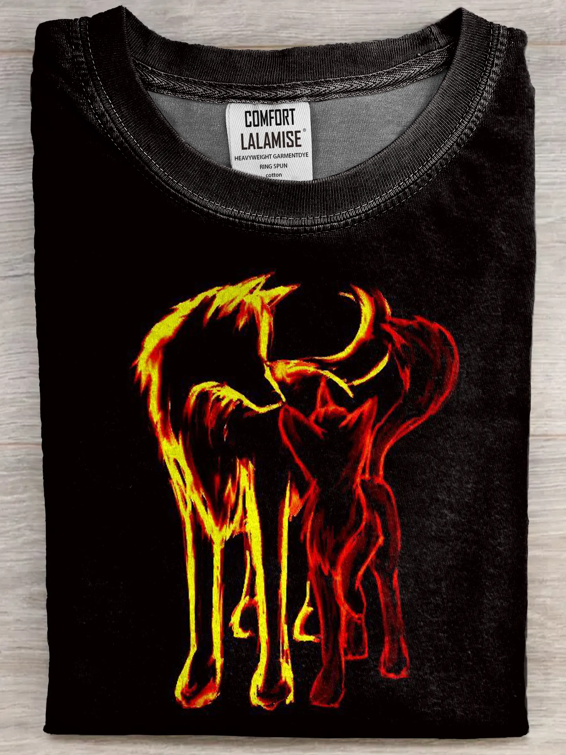 Funny Retro Fox Art Print Casual Cotton Short Sleeve T-shirt