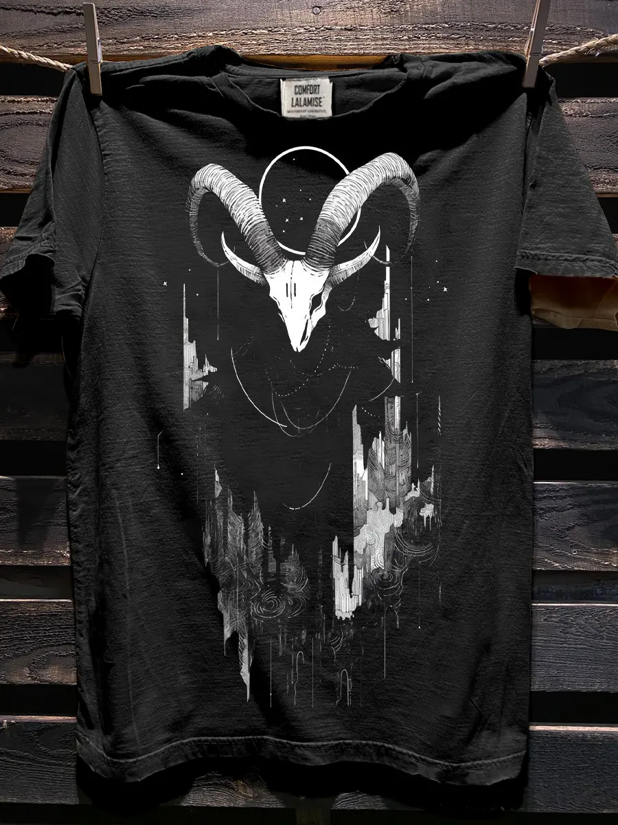 Funny Dark Animal Skull Art Print Casual Cotton Short Sleeve T-shirt