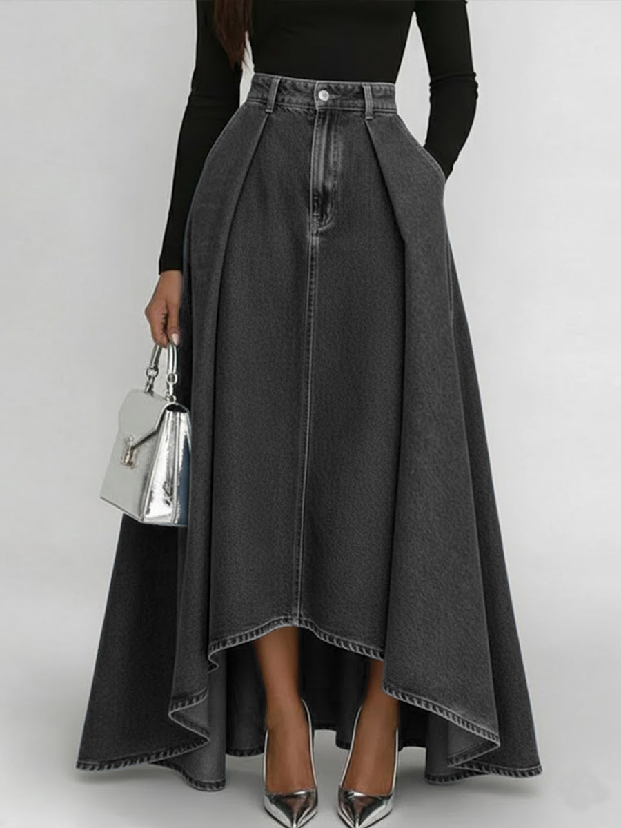 Women's High-waisted Loose-fitting A-line Denim Skirt