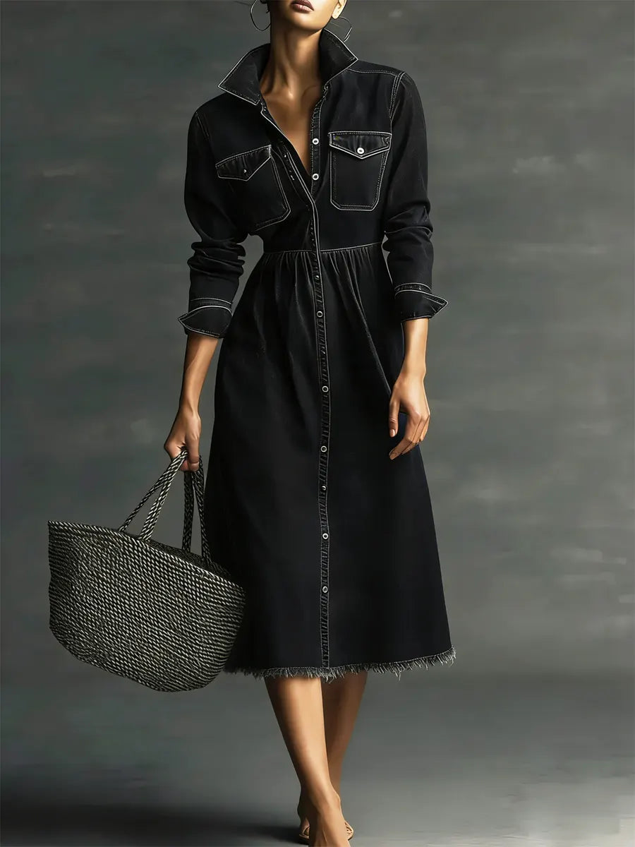 Women's Stylish Art Casual Stand Collar Washed Denim Dress