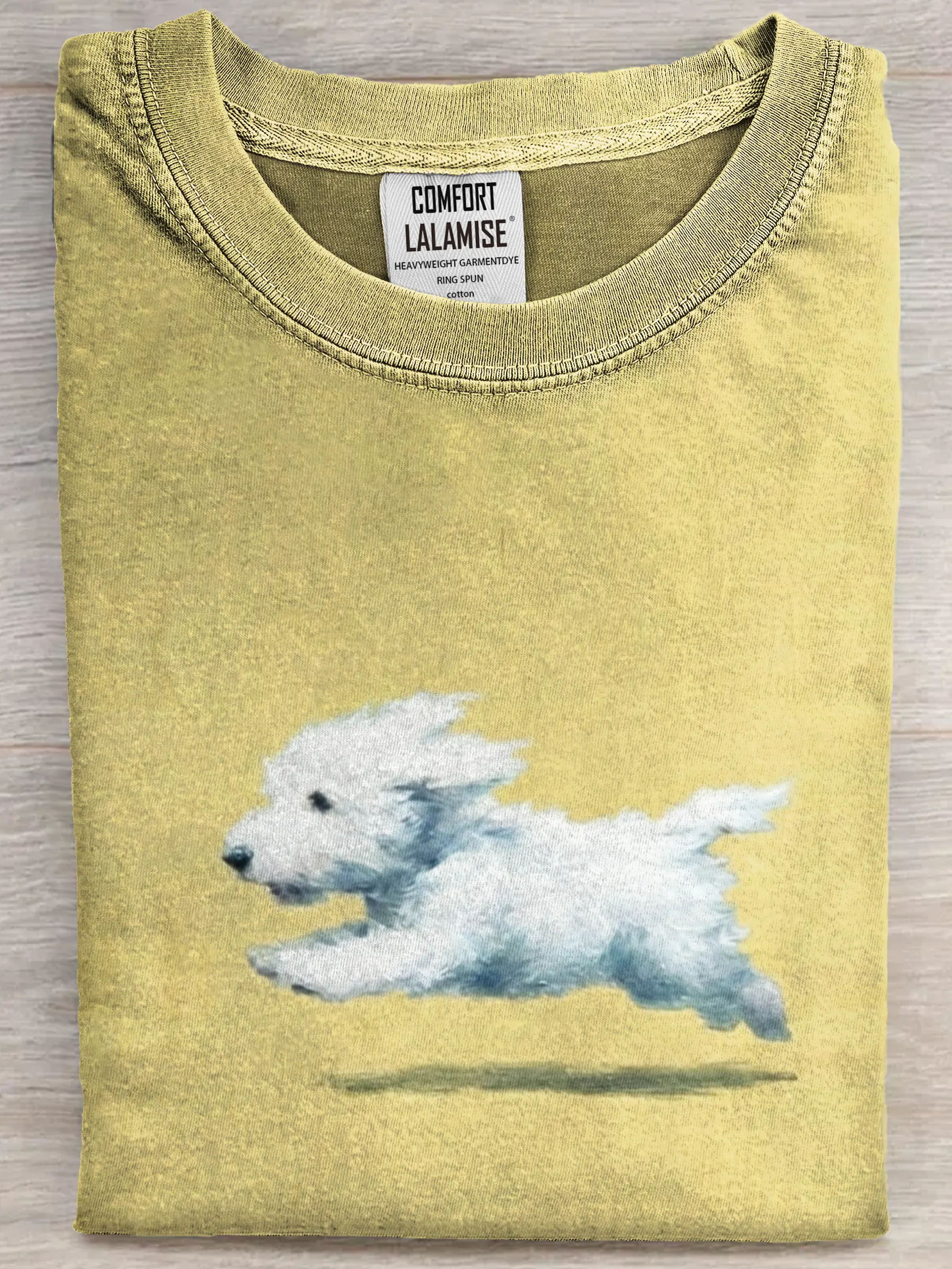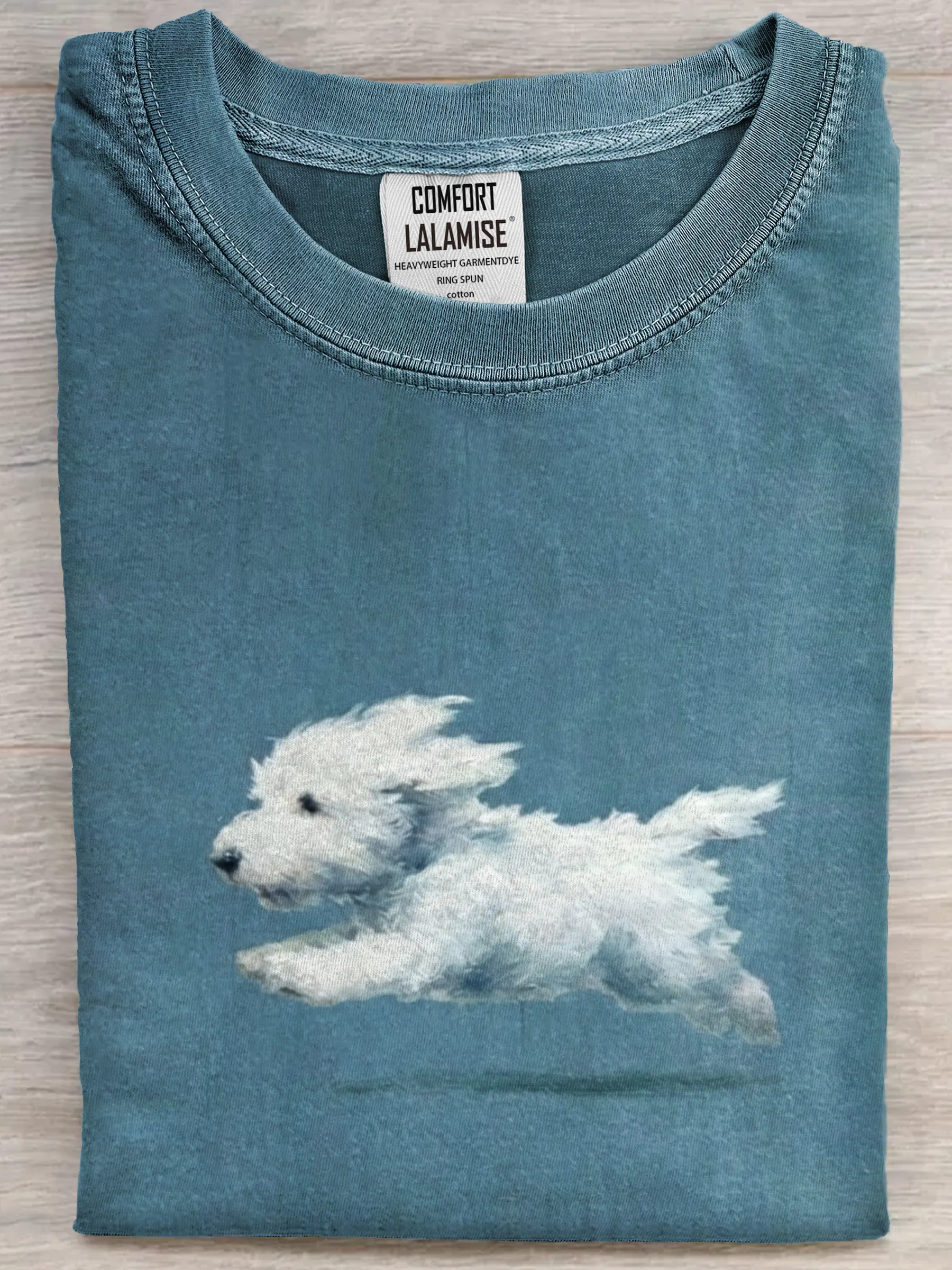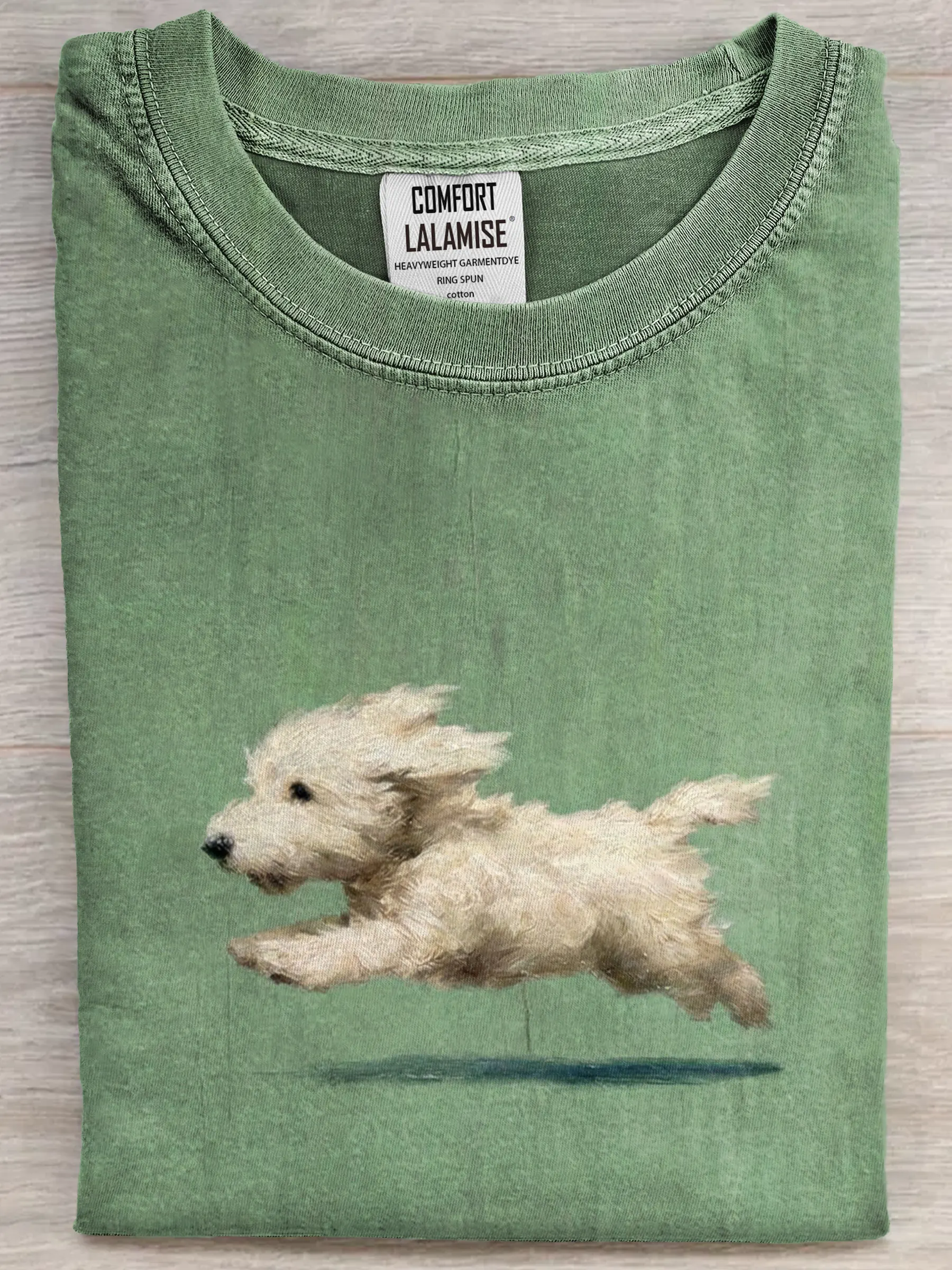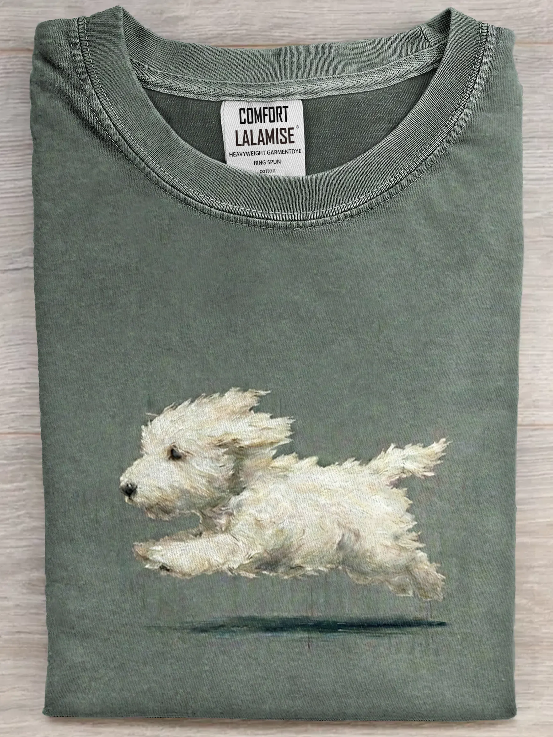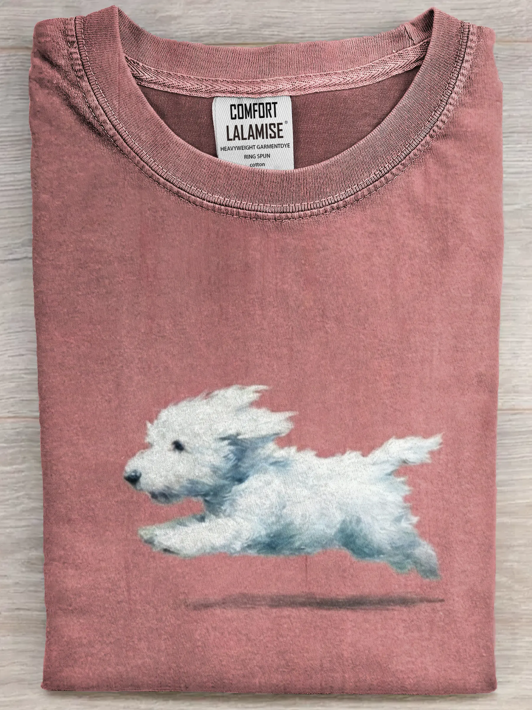 Funny Retro Cute Running White Dog Art Print Casual Cotton Short Sleeve T-shirt