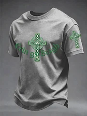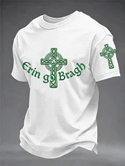 Men's Erin Go Bragh Celtic Knot Shamrock Cross Print Casual Tee
