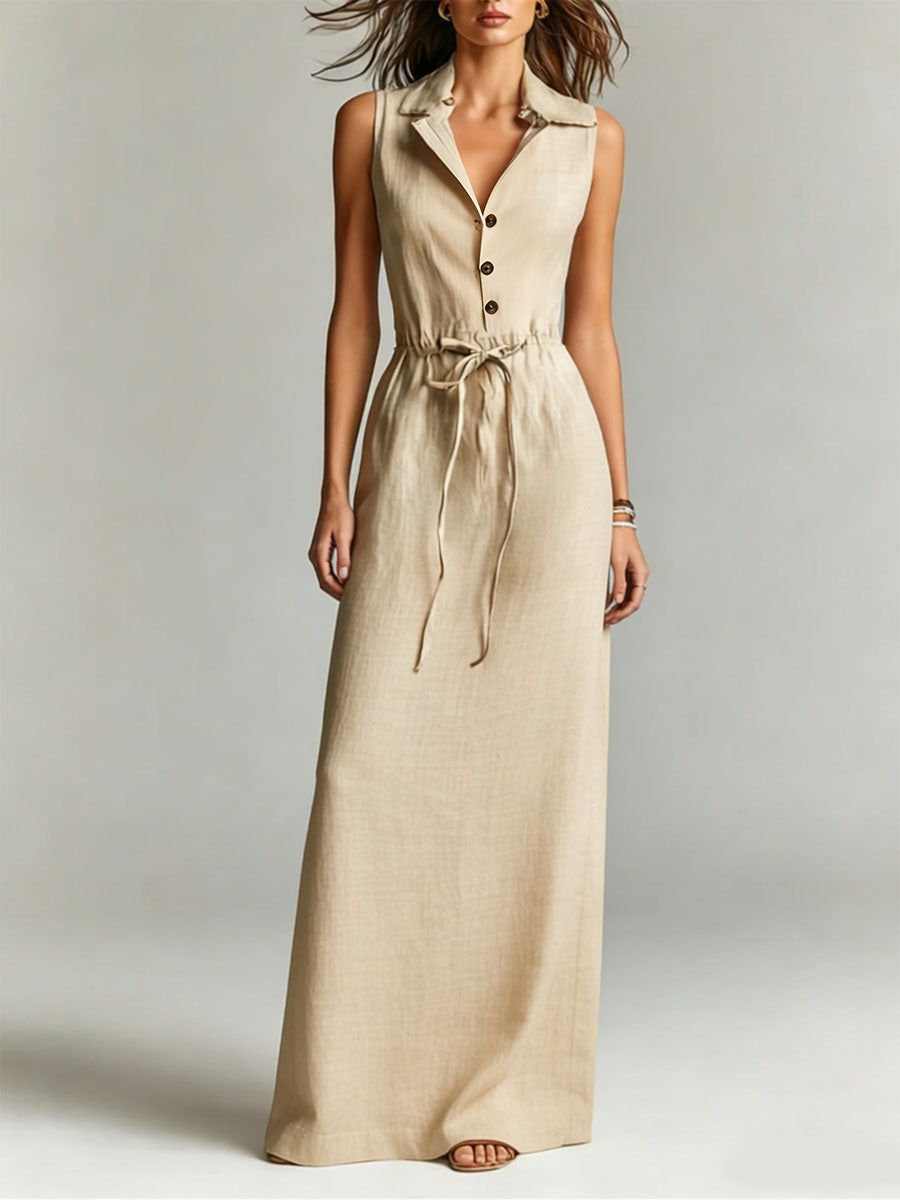 Women's Linen Sleeveless Shirt Dress