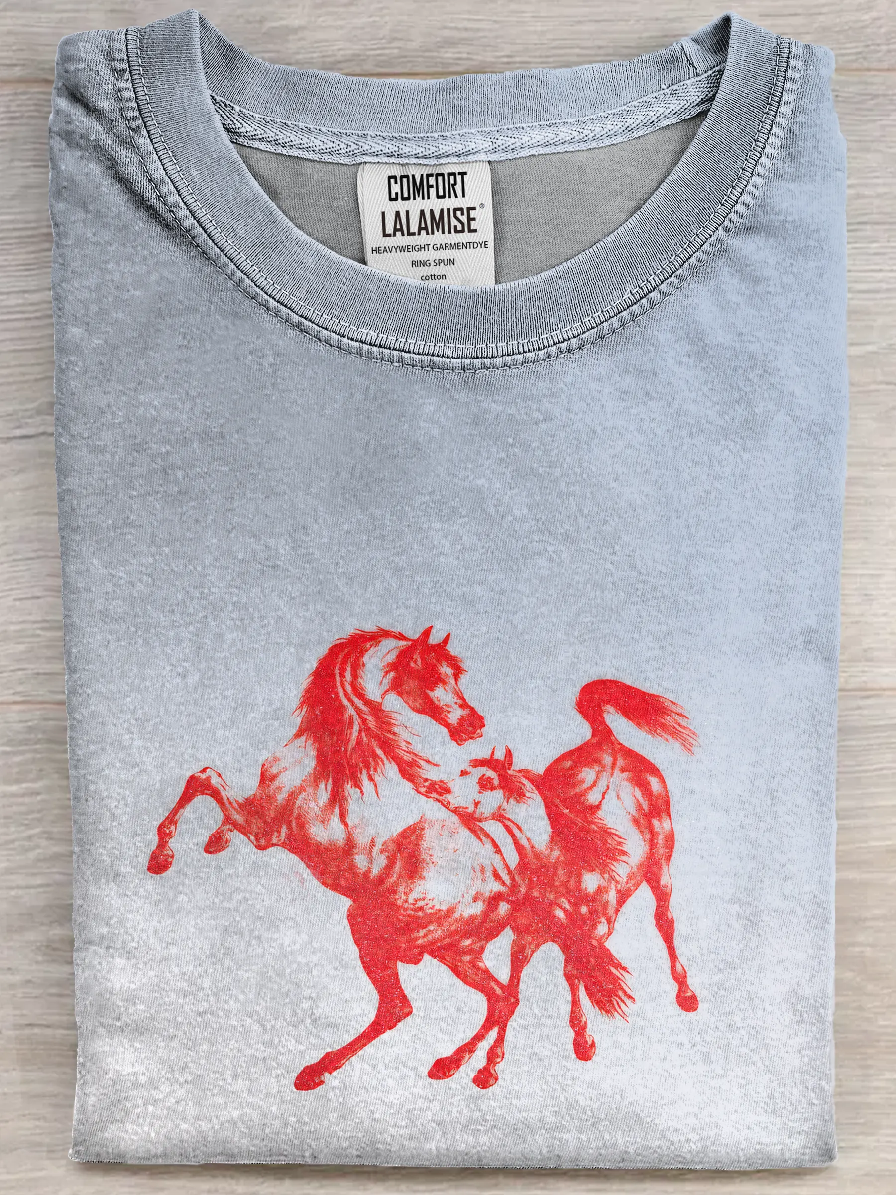 Funny Retro Red Horse Art Print Casual Cotton Short Sleeve T-shirt