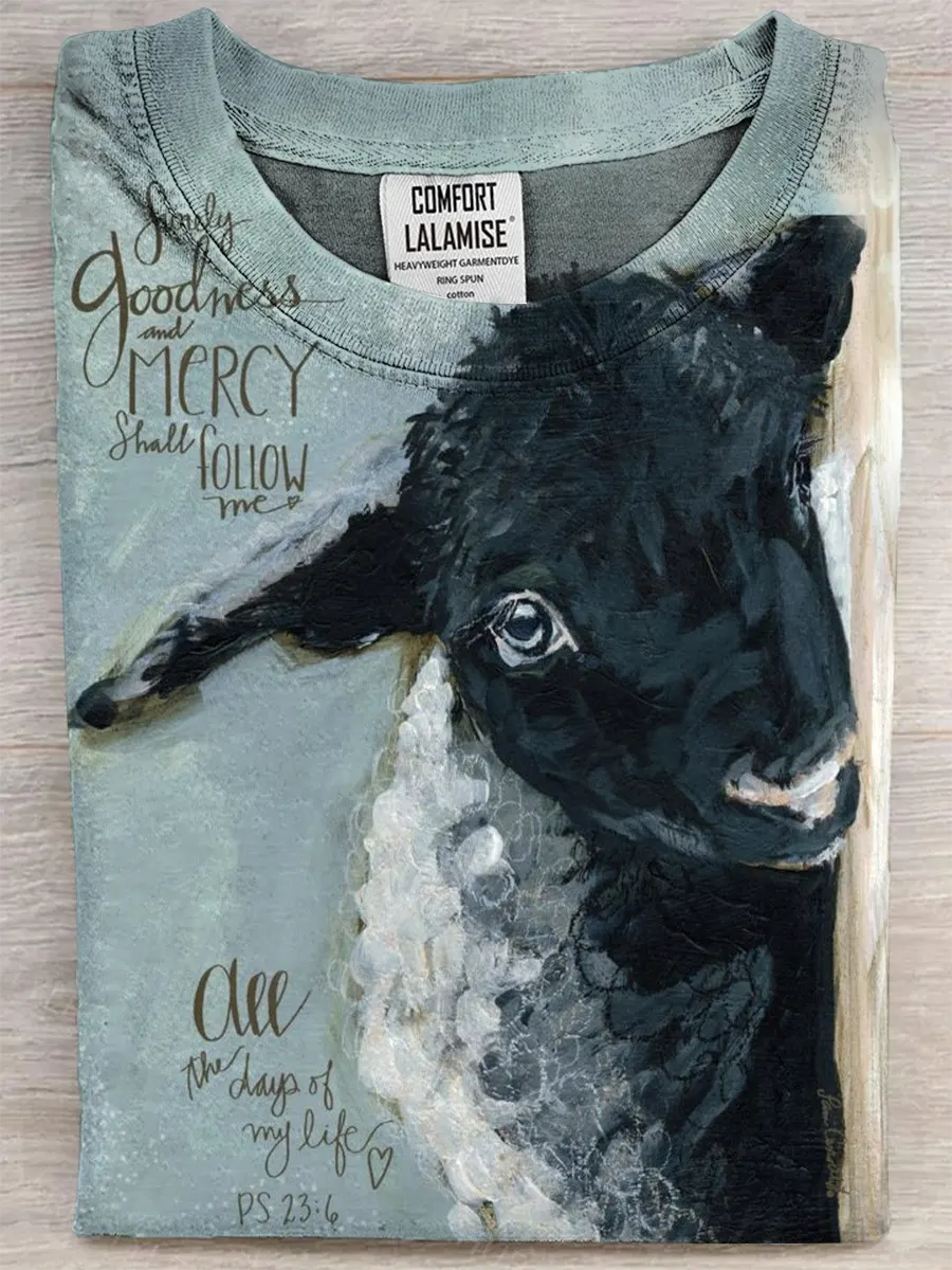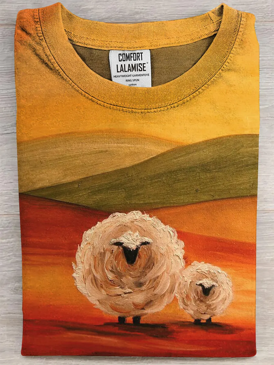 Retro Sheep Fun Art Print Casual Pure Cotton Short Sleeved T-shirt