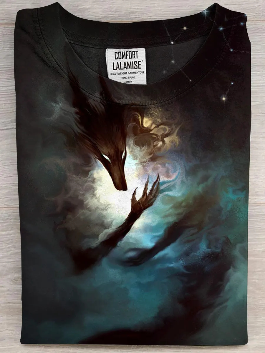 Retro Wolf Fun Art Print Casual Pure Cotton Short Sleeved T-shirt