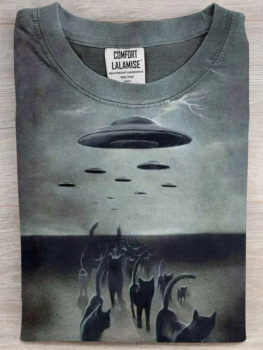 Retro Ufo Fun Art Print Casual Pure Cotton Short Sleeved T-shirt