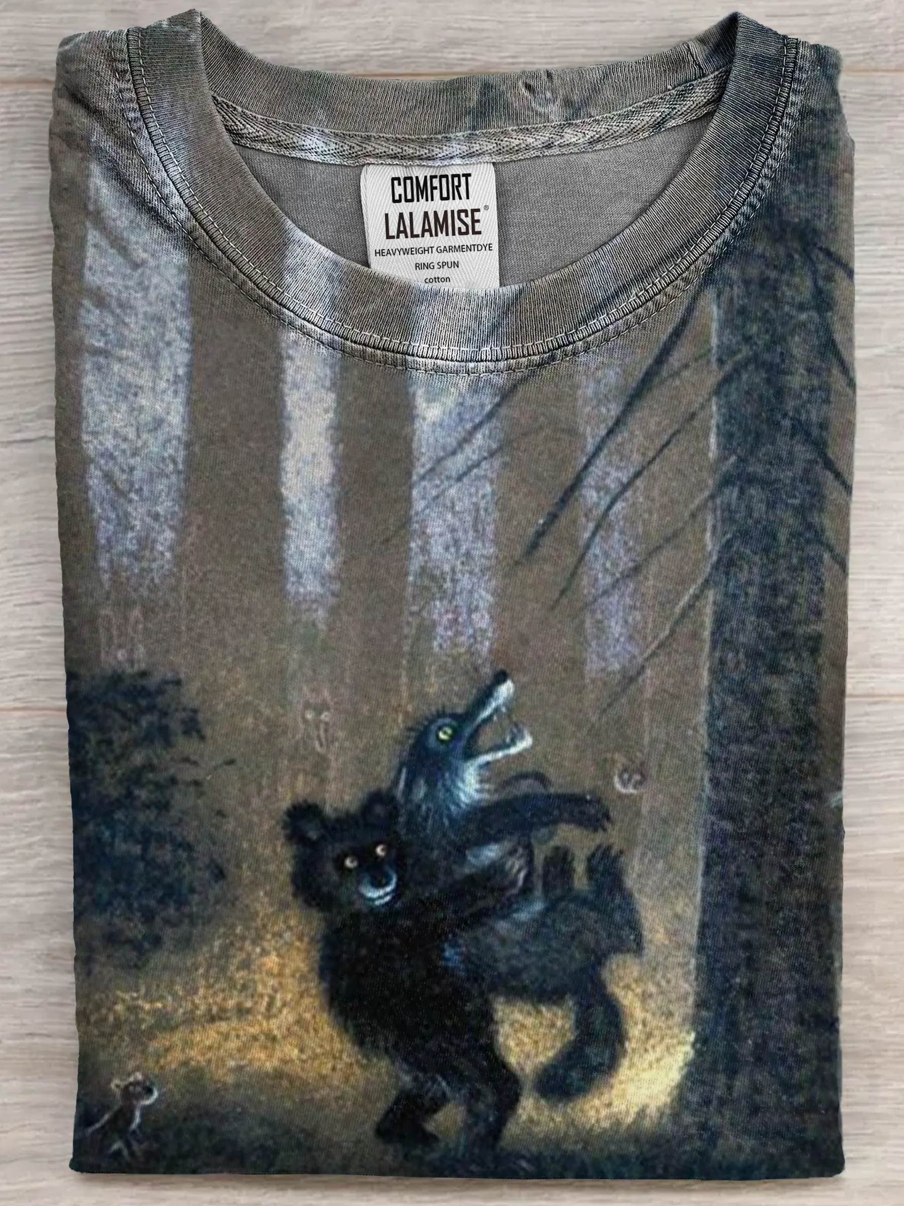 Funny Dark Bear And Wolf Art Print Casual Cotton Short Sleeve T-shirt