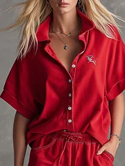Classic retro athletic charm meets everyday comfort in this red cotton collared set. The matching button-down top and elastic-waist shorts are cut from soft, breathable cotton with sporty contrast trim, delivering a timeless look with a relaxed, easy-to-wear silhouette.
