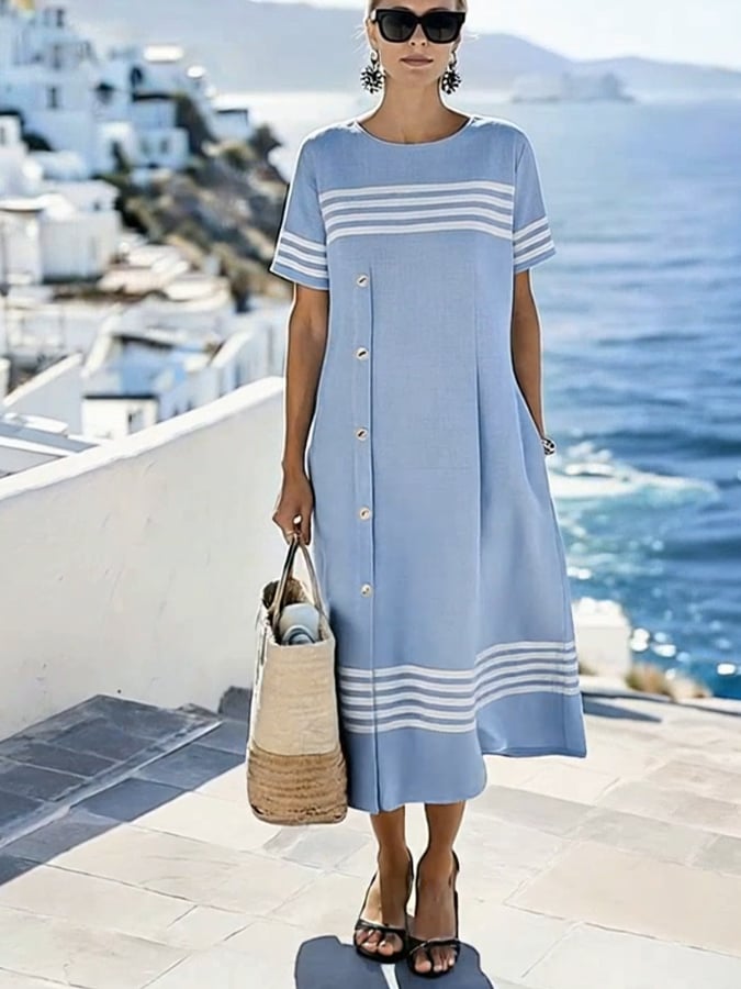 Women'S Loose Striped Print Dress