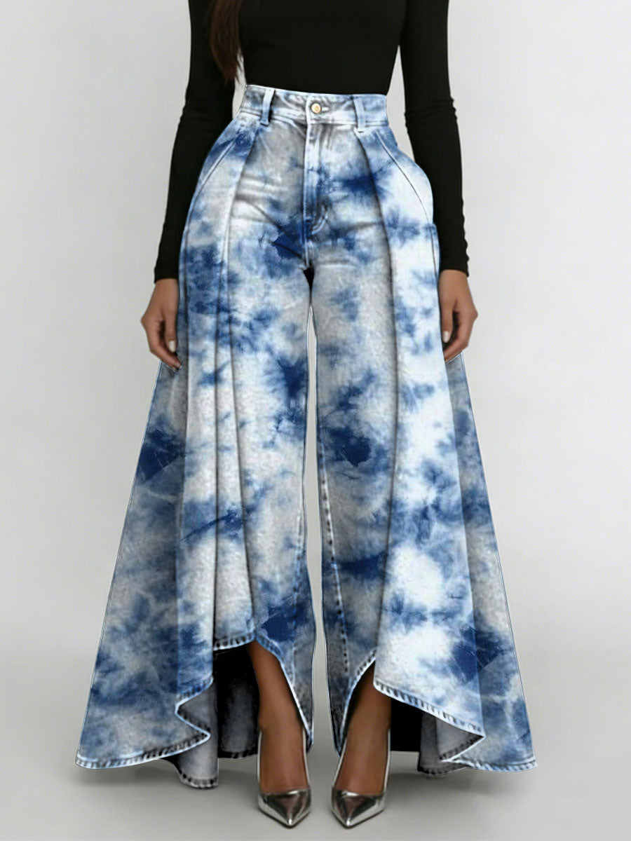 Women's Gradient Decorative Pattern High-waisted Relaxed Wide-leg Jeans