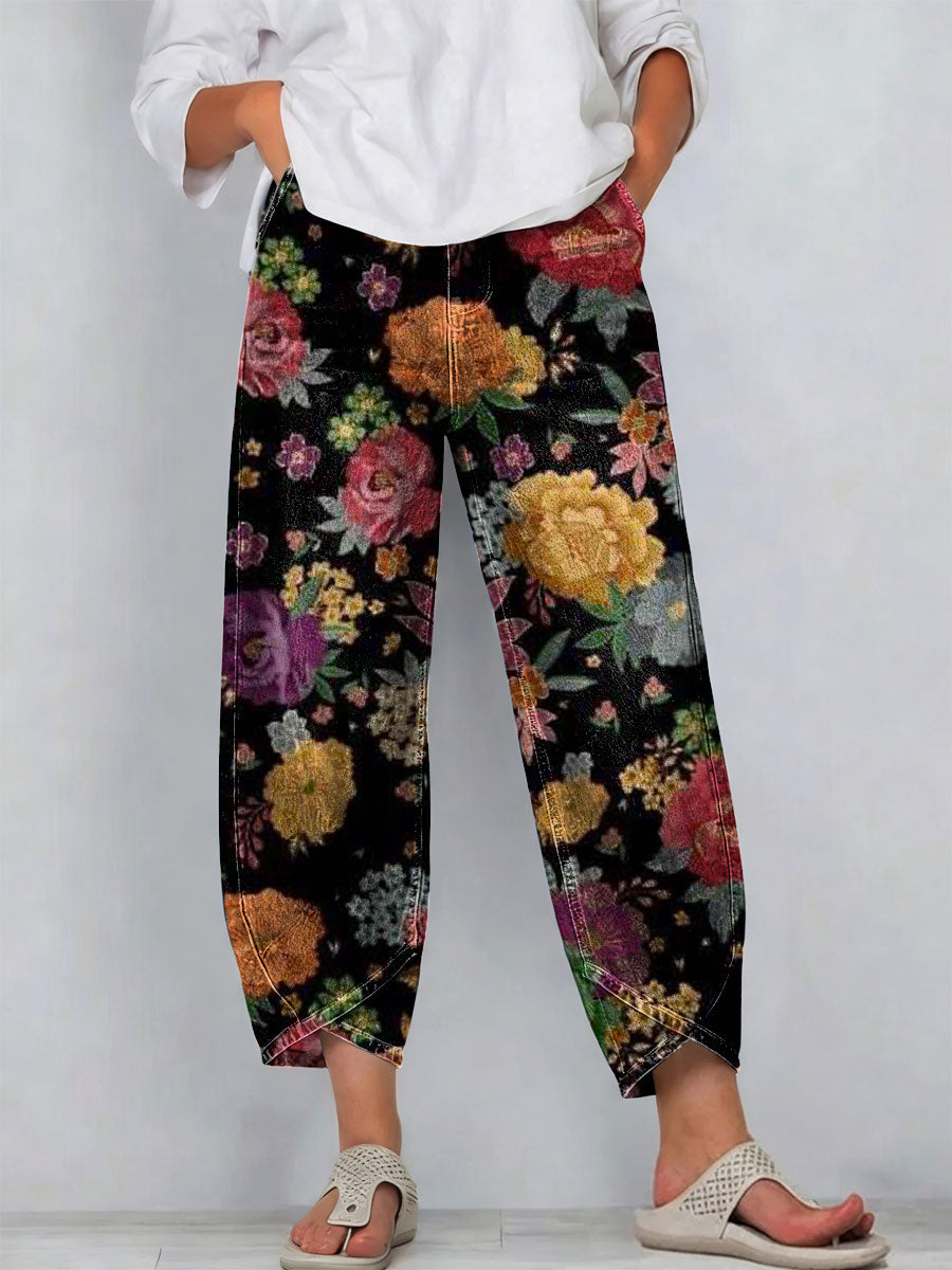 Women's Vintage Flowers Floral Patterns Art Prints Casual Denim Cotton Pants