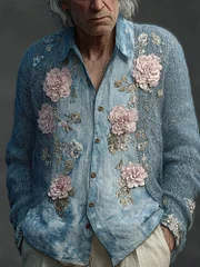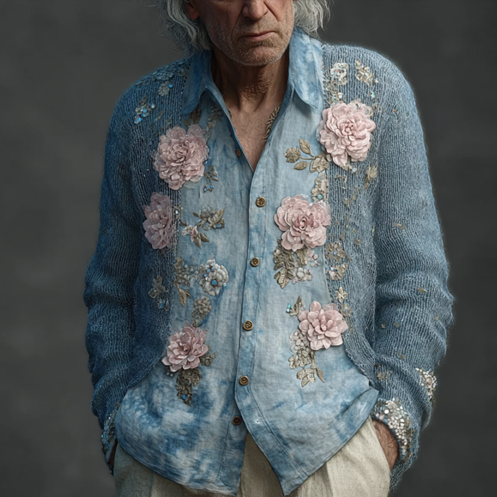 Bohemian Style Blue Tie-dye Embroidered Sequined Floral Cardigan Long-sleeved Top