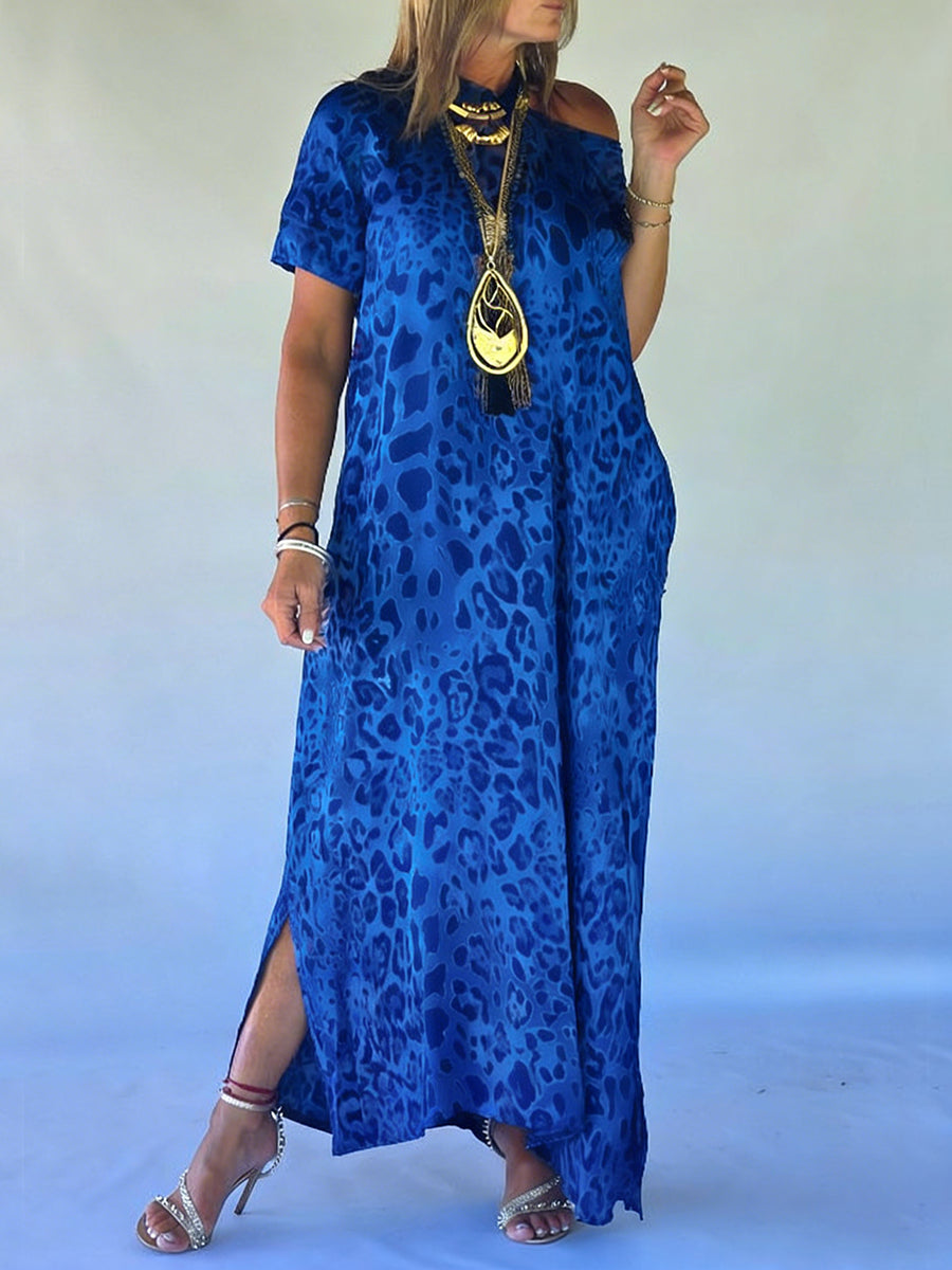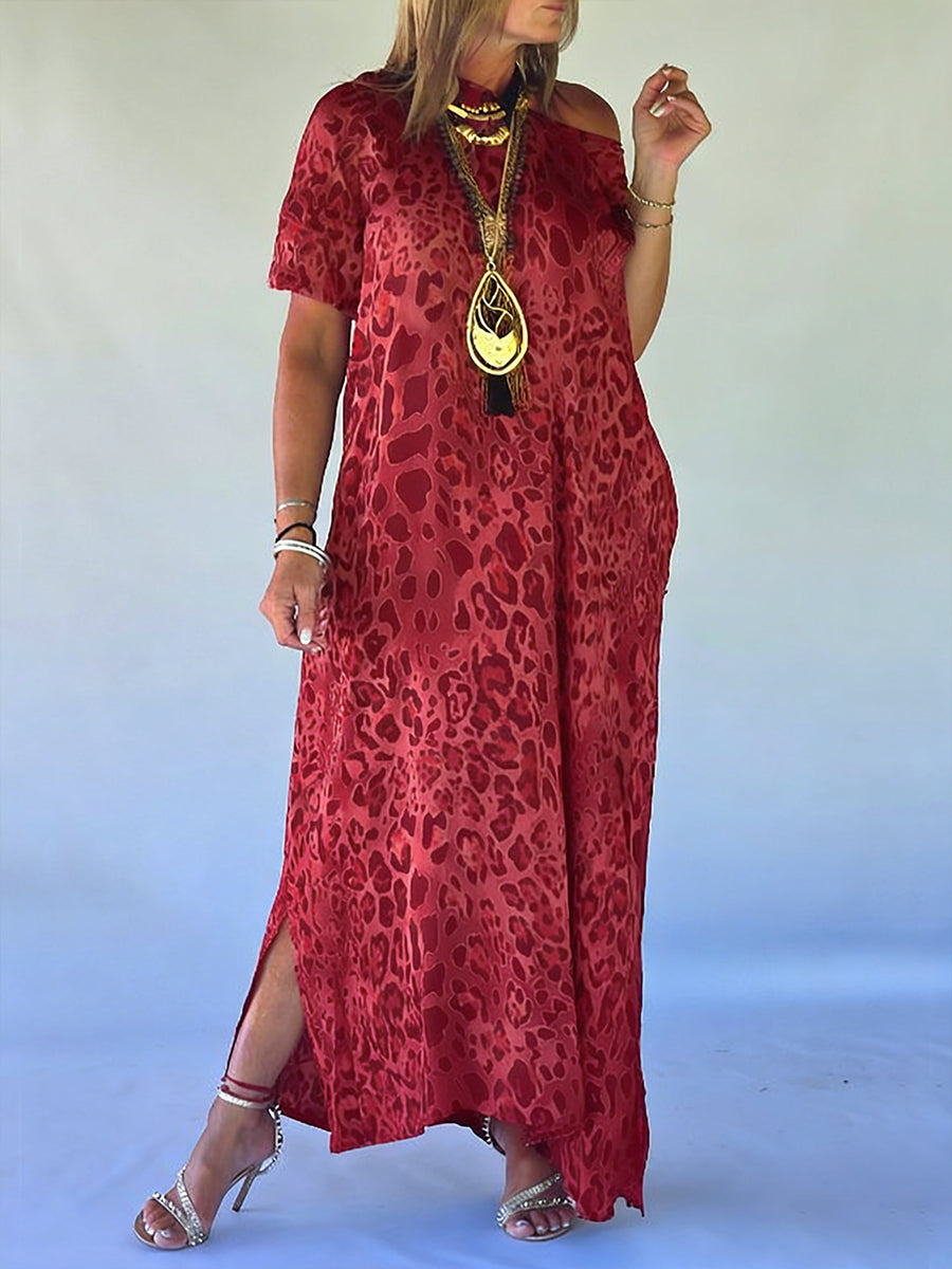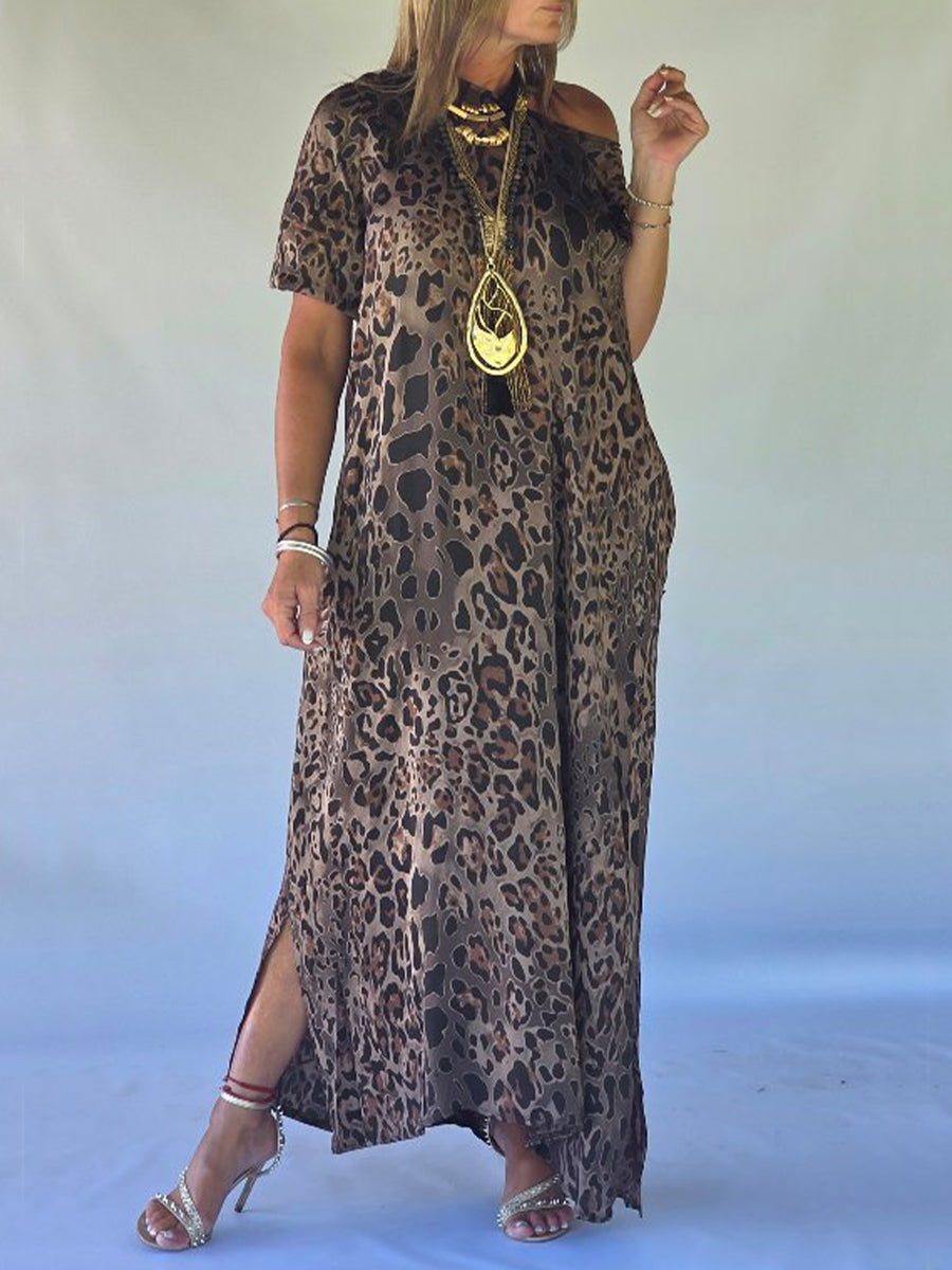 Casual Leopard Print Short-sleeved Linen And Cotton Dress