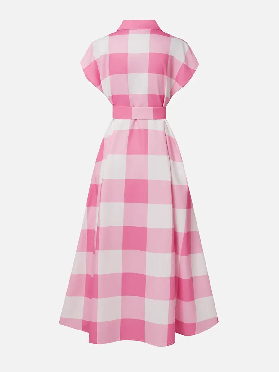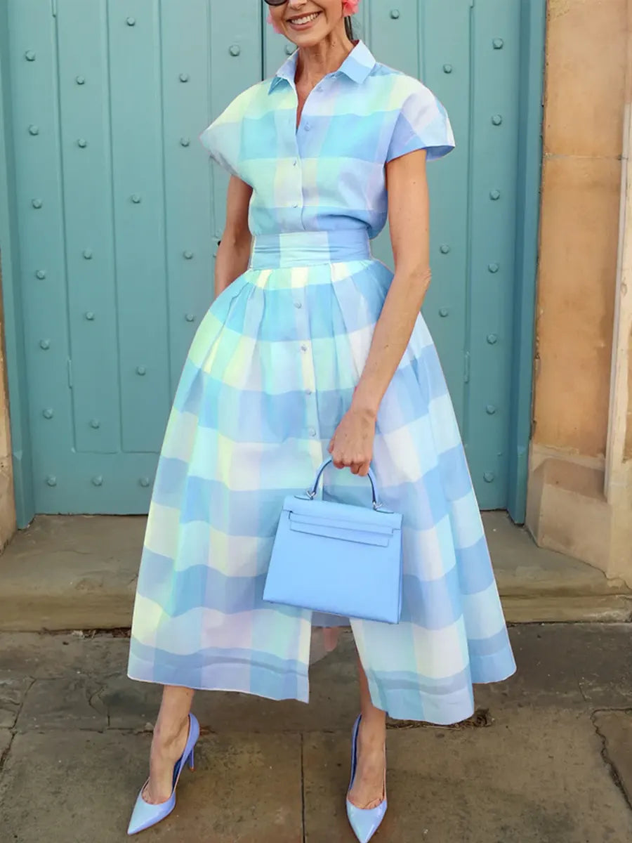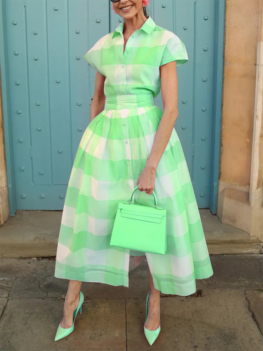 Women's Elegant Plaid Print Button Shirt Collar Midi Dress