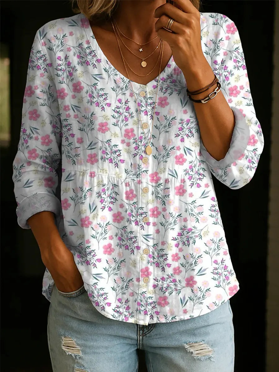 Women's Floral Pattern Art Print Casual Cotton Shirt