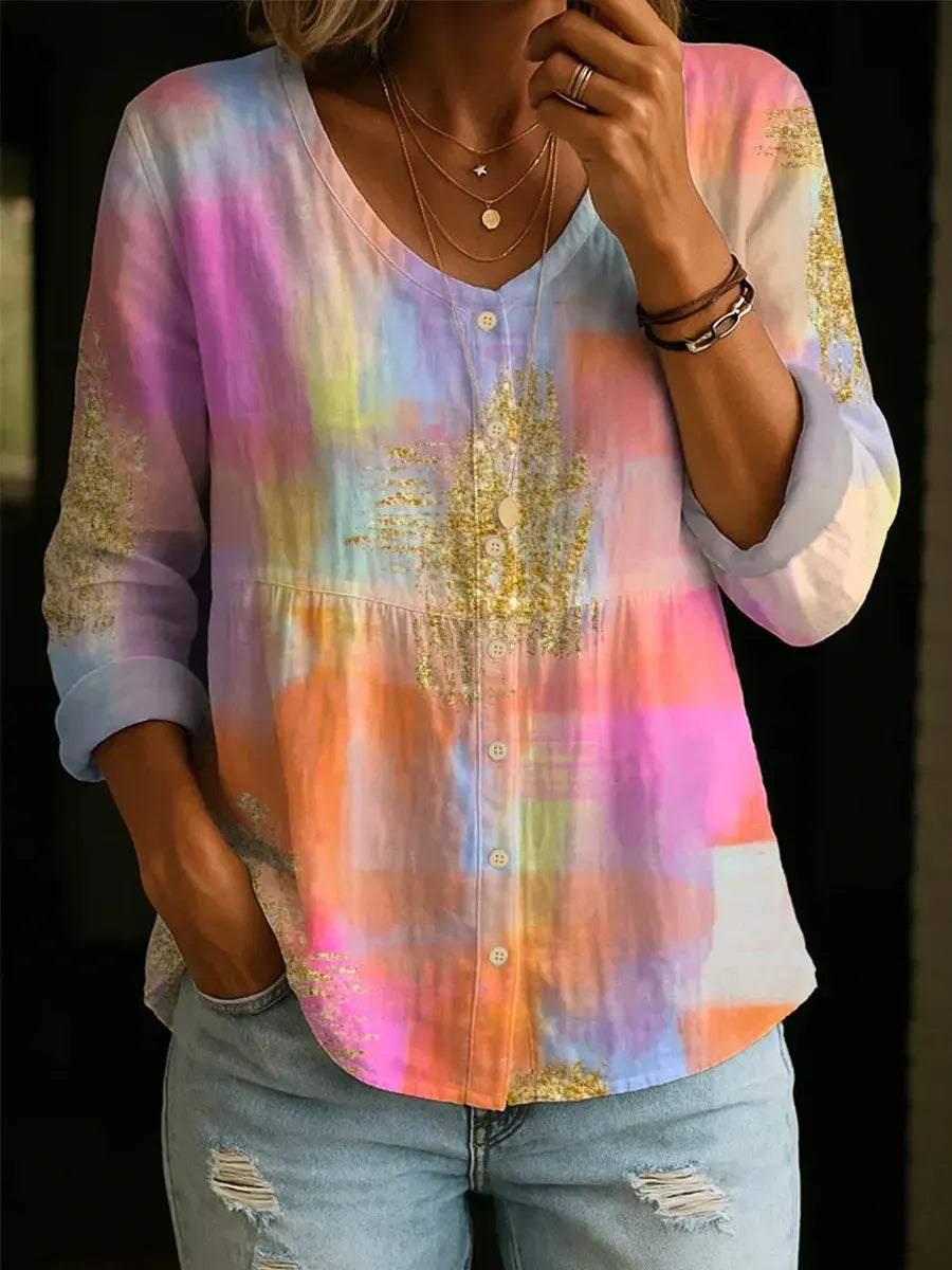 Women's Gradient Pattern Art Print Casual Cotton Shirt