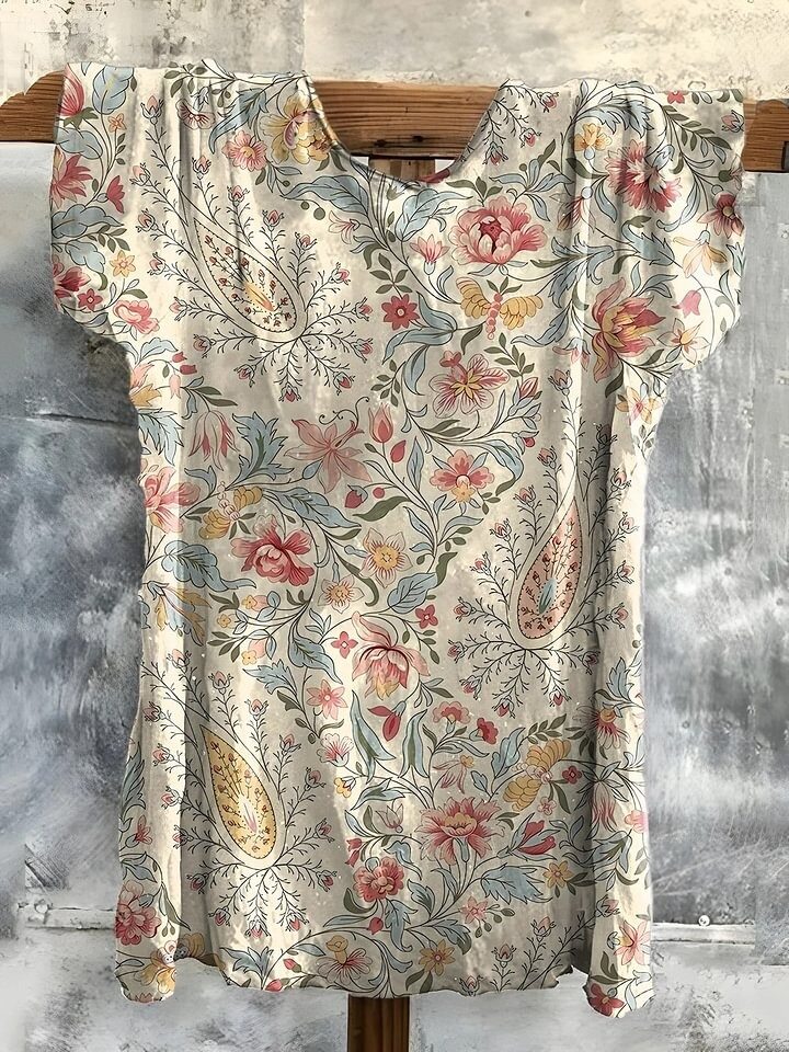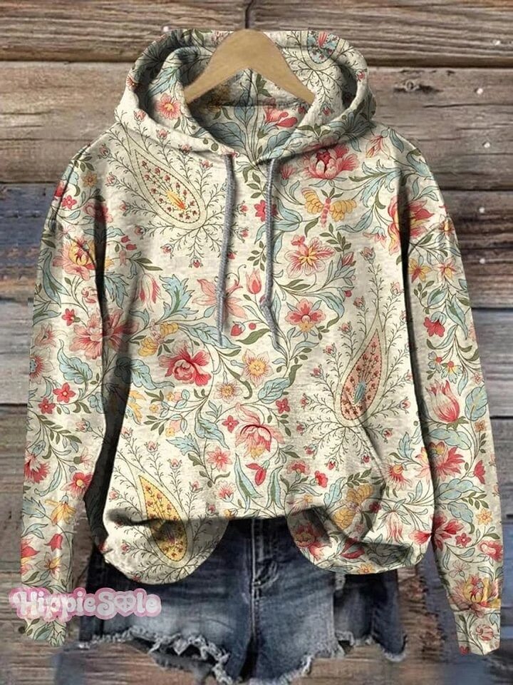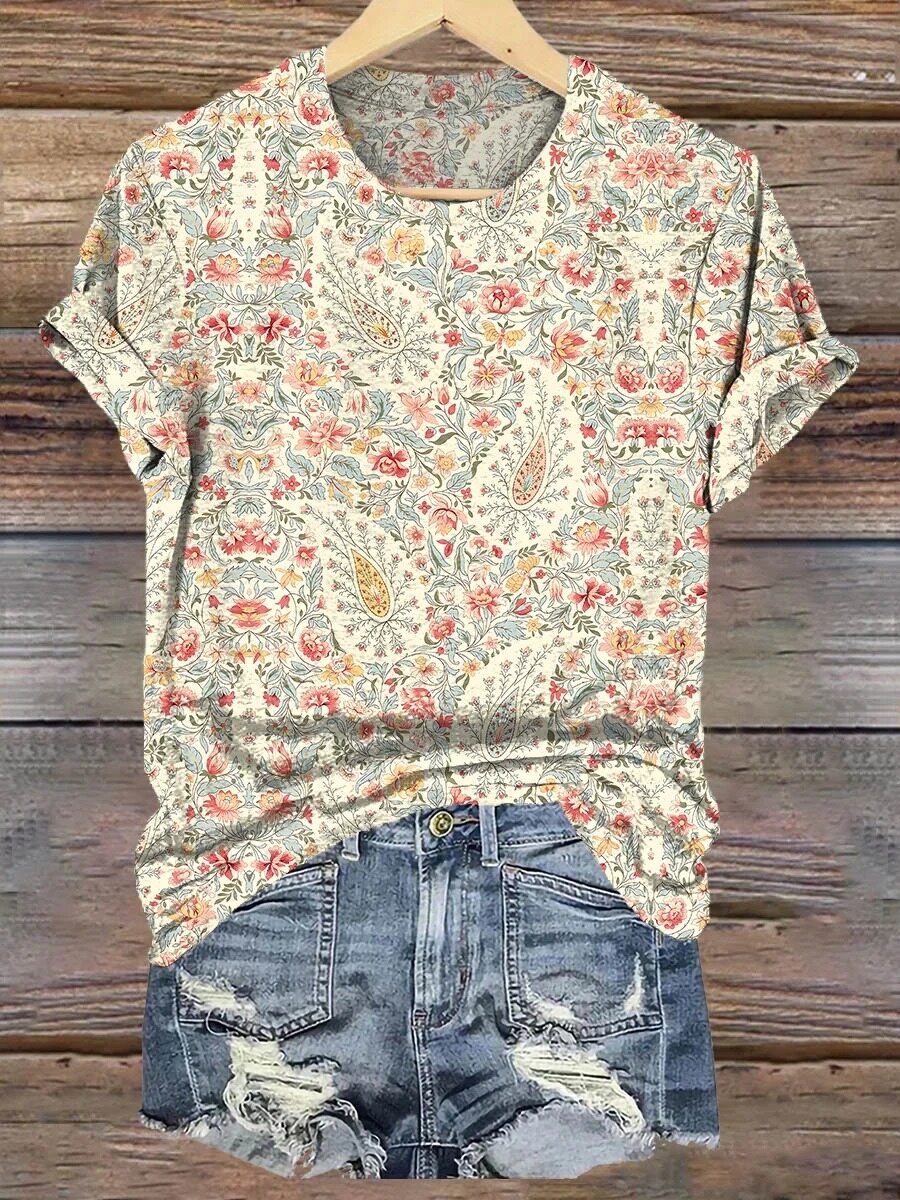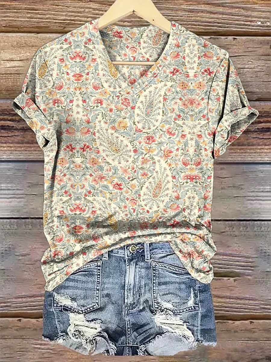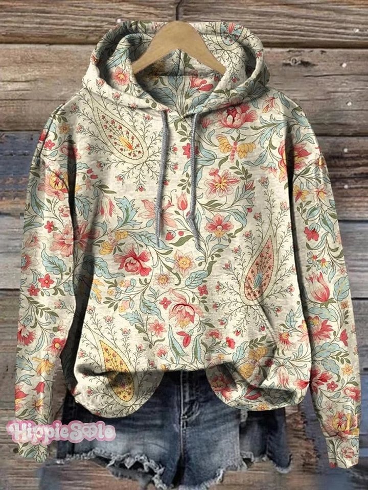Women's Retro Paisley Floral Art Print Casual Cotton And Linen Shirt