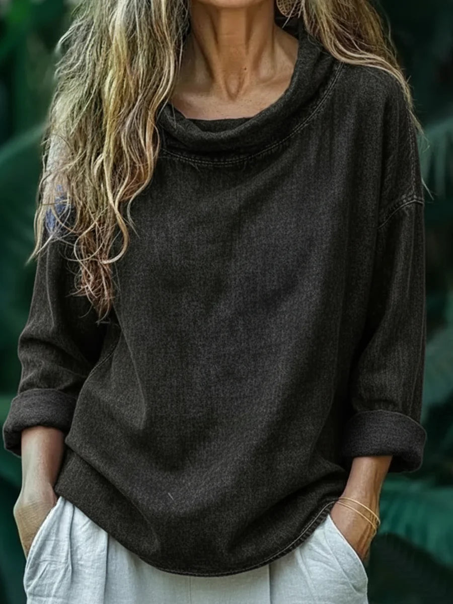 Women's Stylish Retro Art Casual Swing Collar Denim Shirt