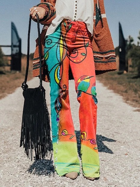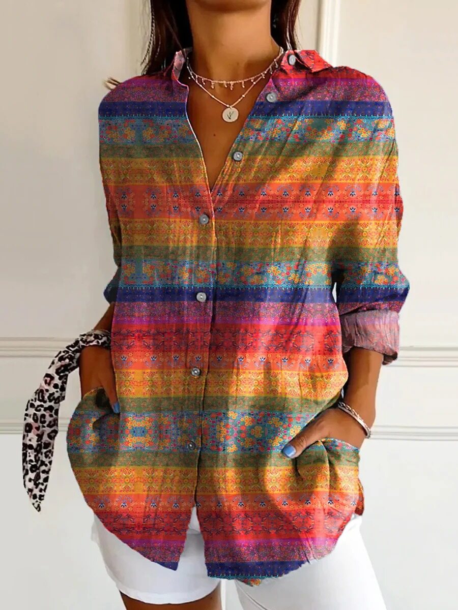 Women's Vintage Floral Bird Art Print Casual Cotton Shirt