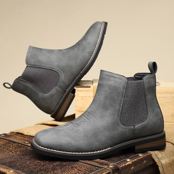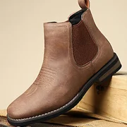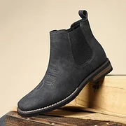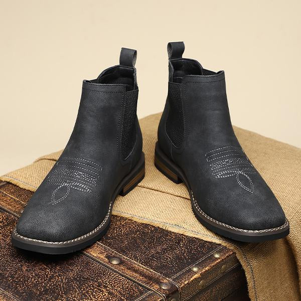 The Men's Casual Retro Slip-On Ankle Western Boots combine classic western style with modern casual design. Featuring a convenient slip-on design with elastic side panels, these boots are easy to wear while offering a comfortable, secure fit. The retro style is highlighted by a pointed toe and subtle stitching, reflecting traditional western craftsmanship.