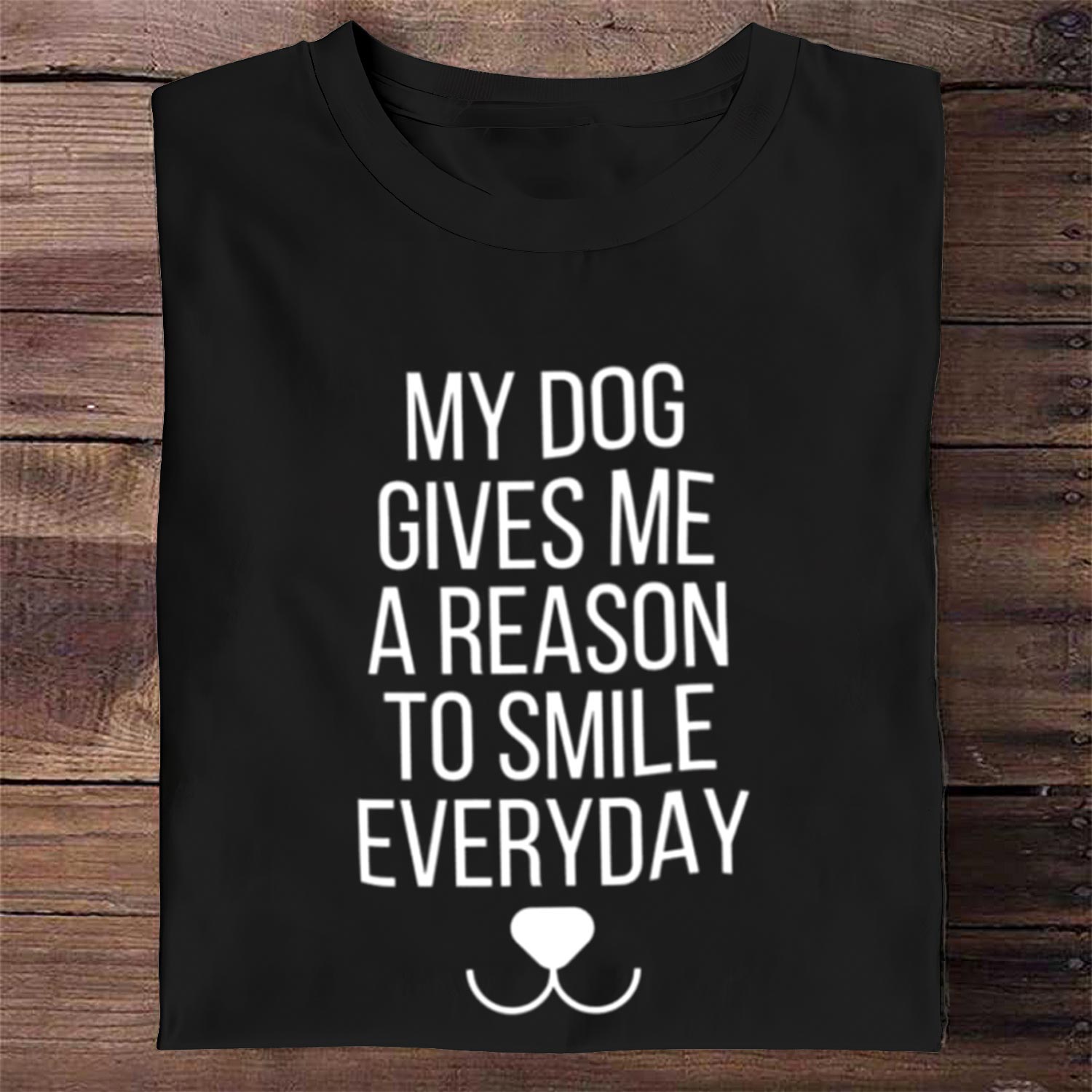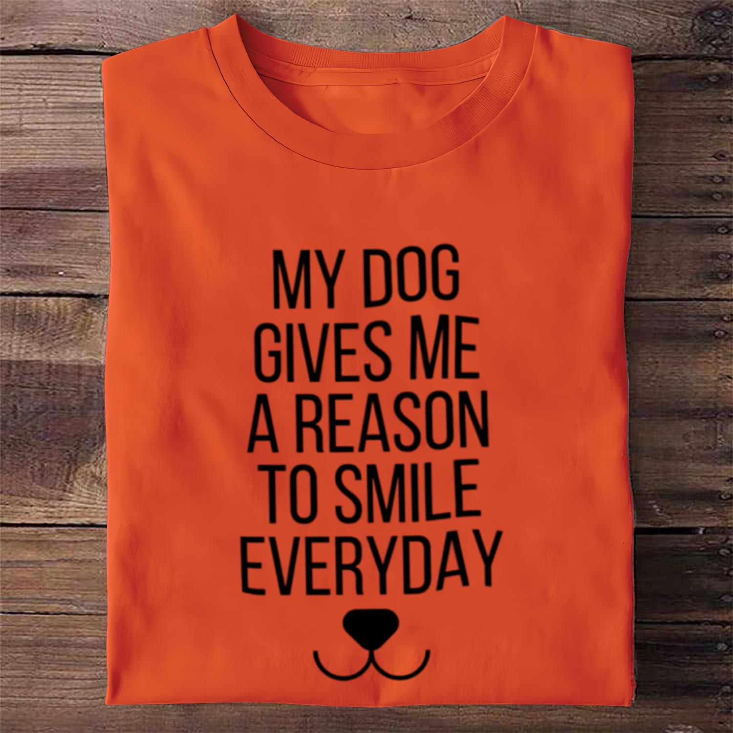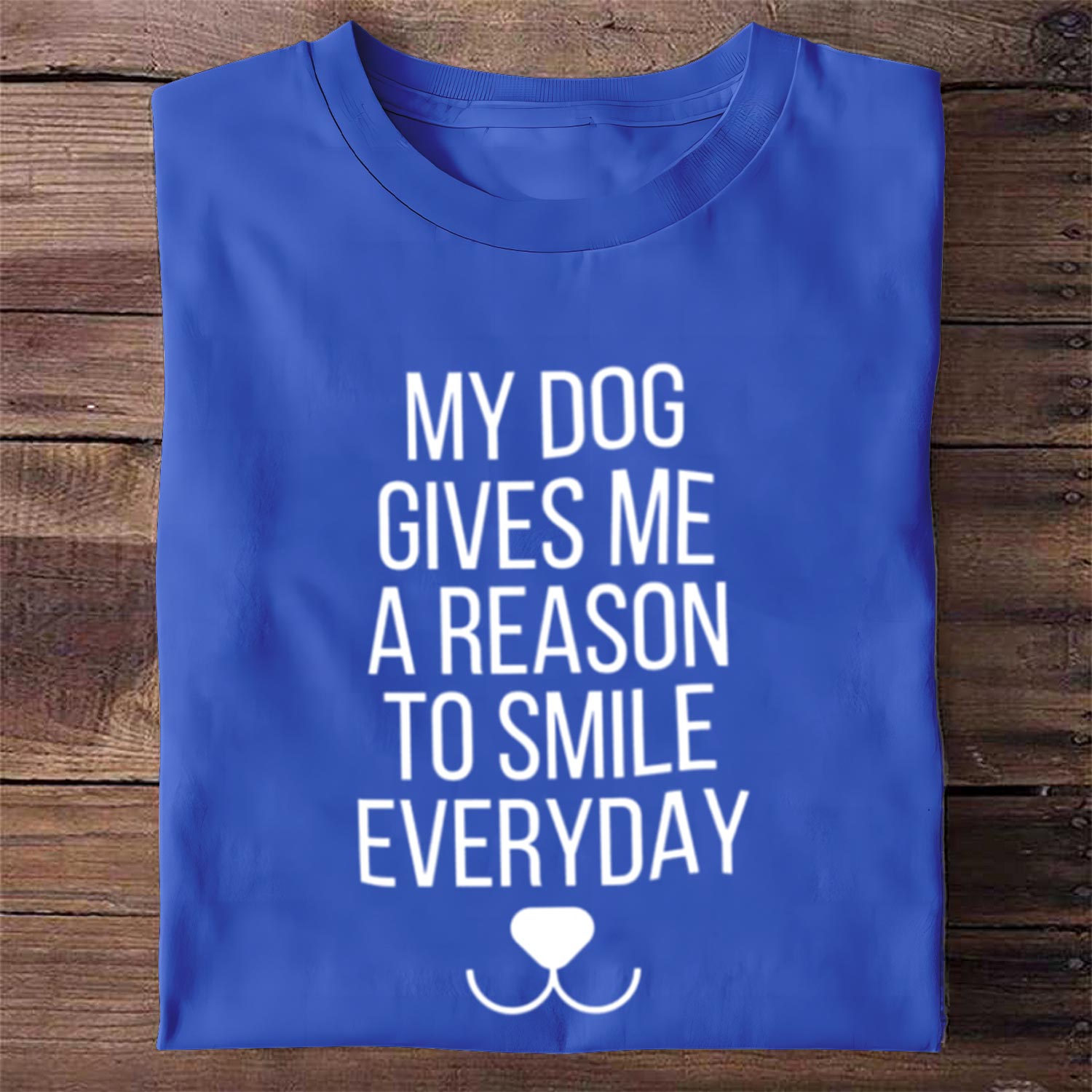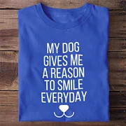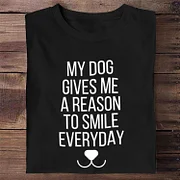 My Dog Gives Me Reason To Smile Print Casual Round Neck Short-sleeved T-shirt