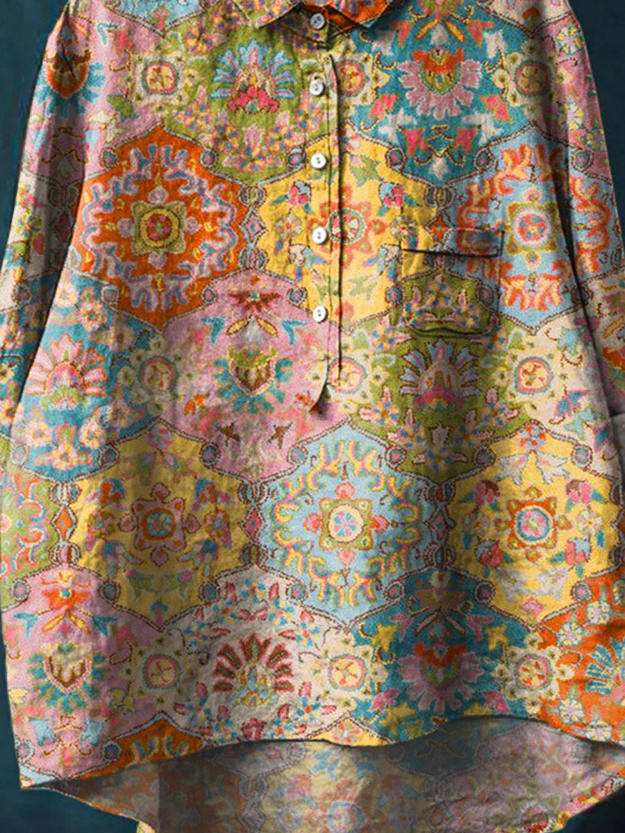 Vintage Ethnic Pattern Art Print Casual Cotton And Linen Shirt