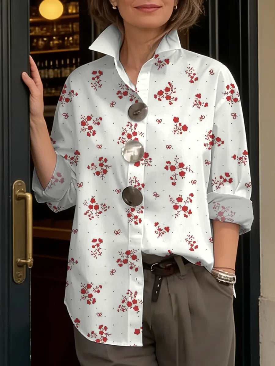 Women's Floral Art Print Casual Long Sleeve Cotton Shirt