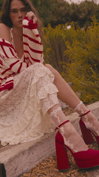 Dream of You Sheer Ruffled Floral Lace Midi Dress