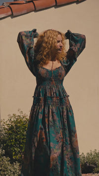 Wandering Rose Smocked Floral Chiffon Midi Dress