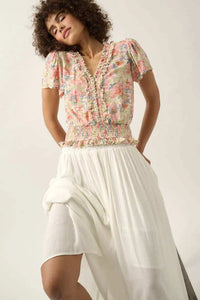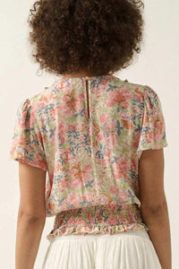 Watercolor Daydream Ruffled Floral Crepe Blouse