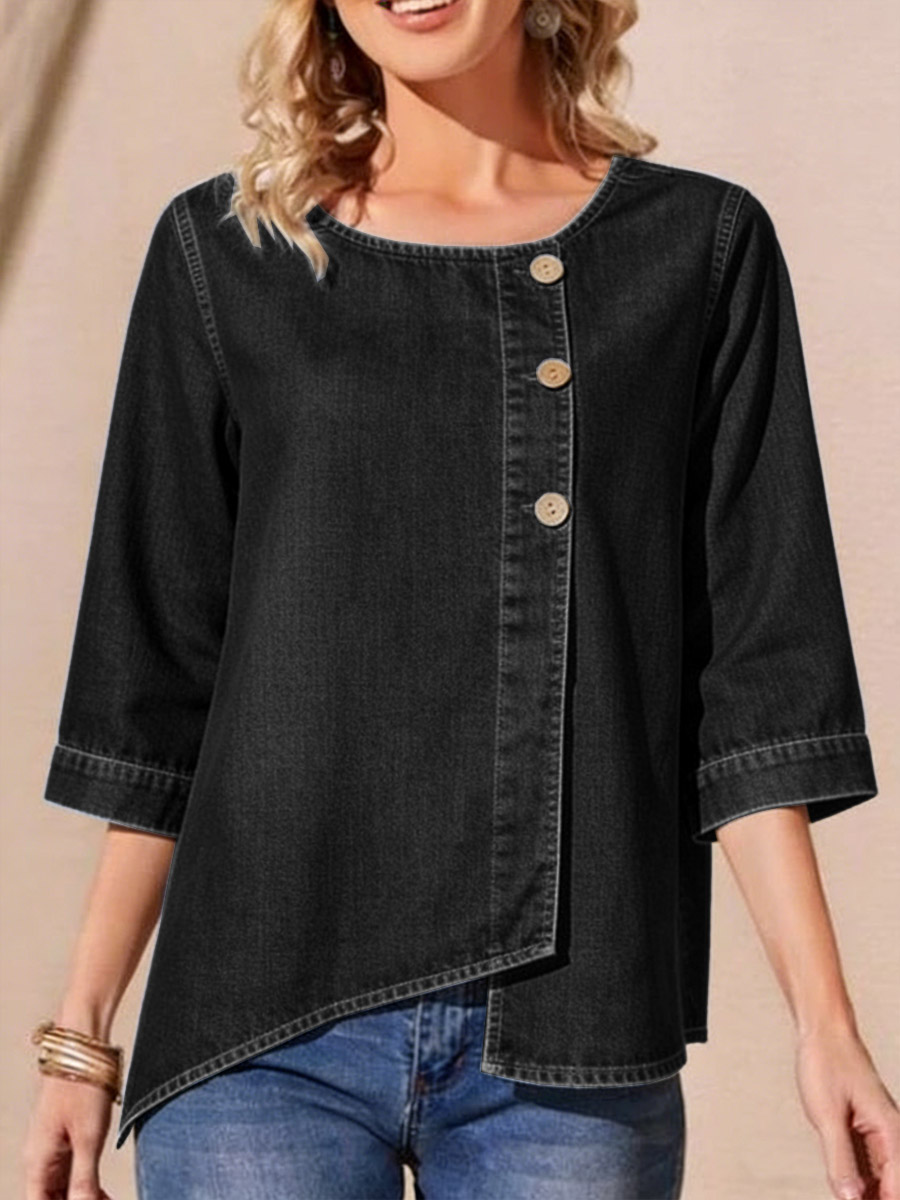 Women's Round Neck 3/4 Sleeve Casual Loose Denim Top