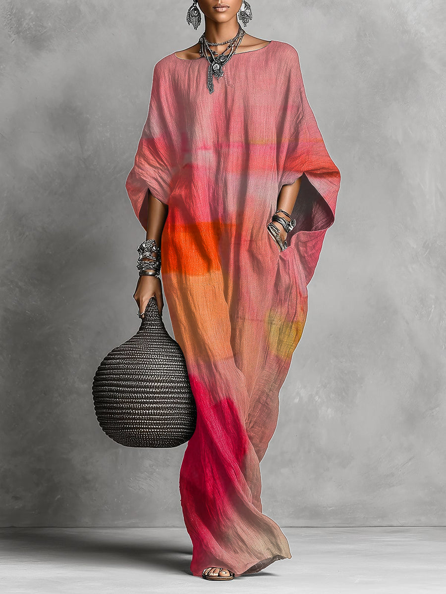 Women's Retro Patterns Print Minimalist Casual Cotton Linen Long Dress