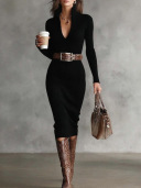 ✨ British Style Belted Bodycon Dress 👗 | Slim Fit Midi Knee-Length Inner Wear Base Layer
