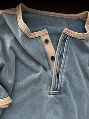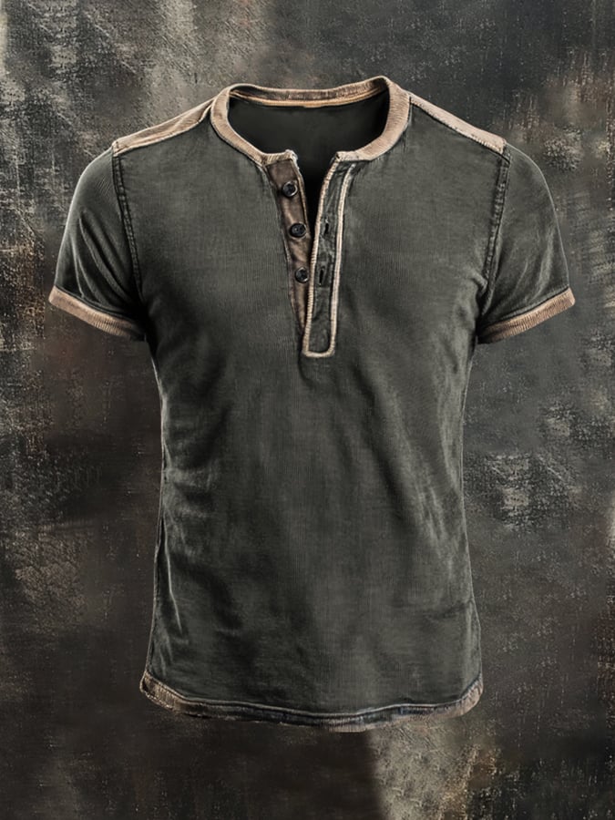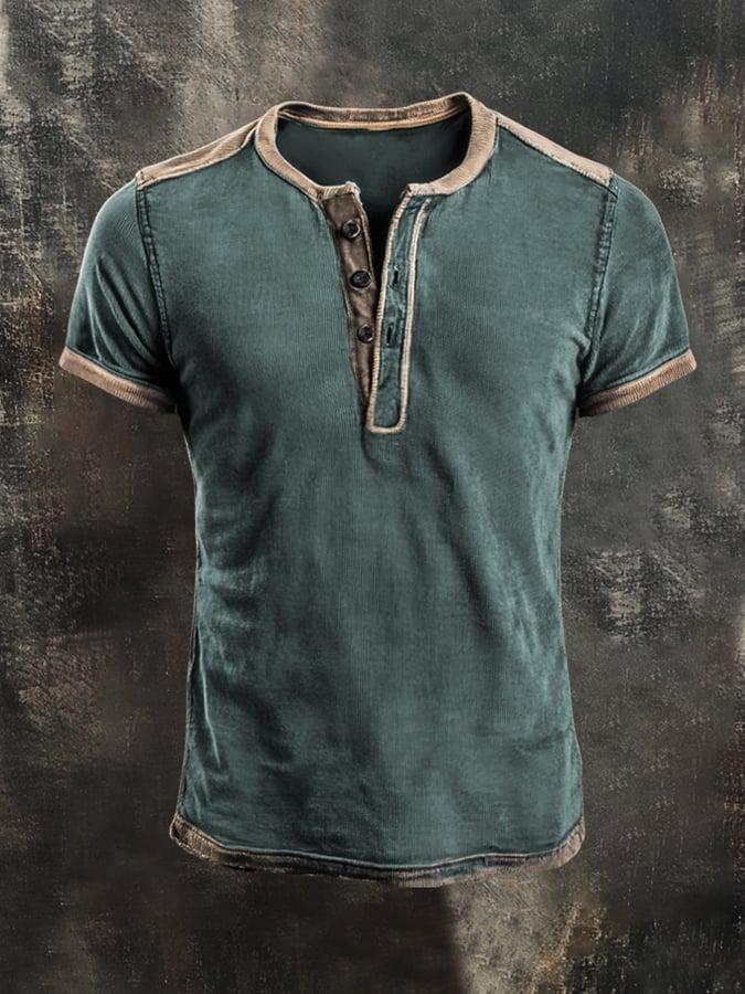 Men'S Retro Colorblock Casual Henley Short Sleeve Top