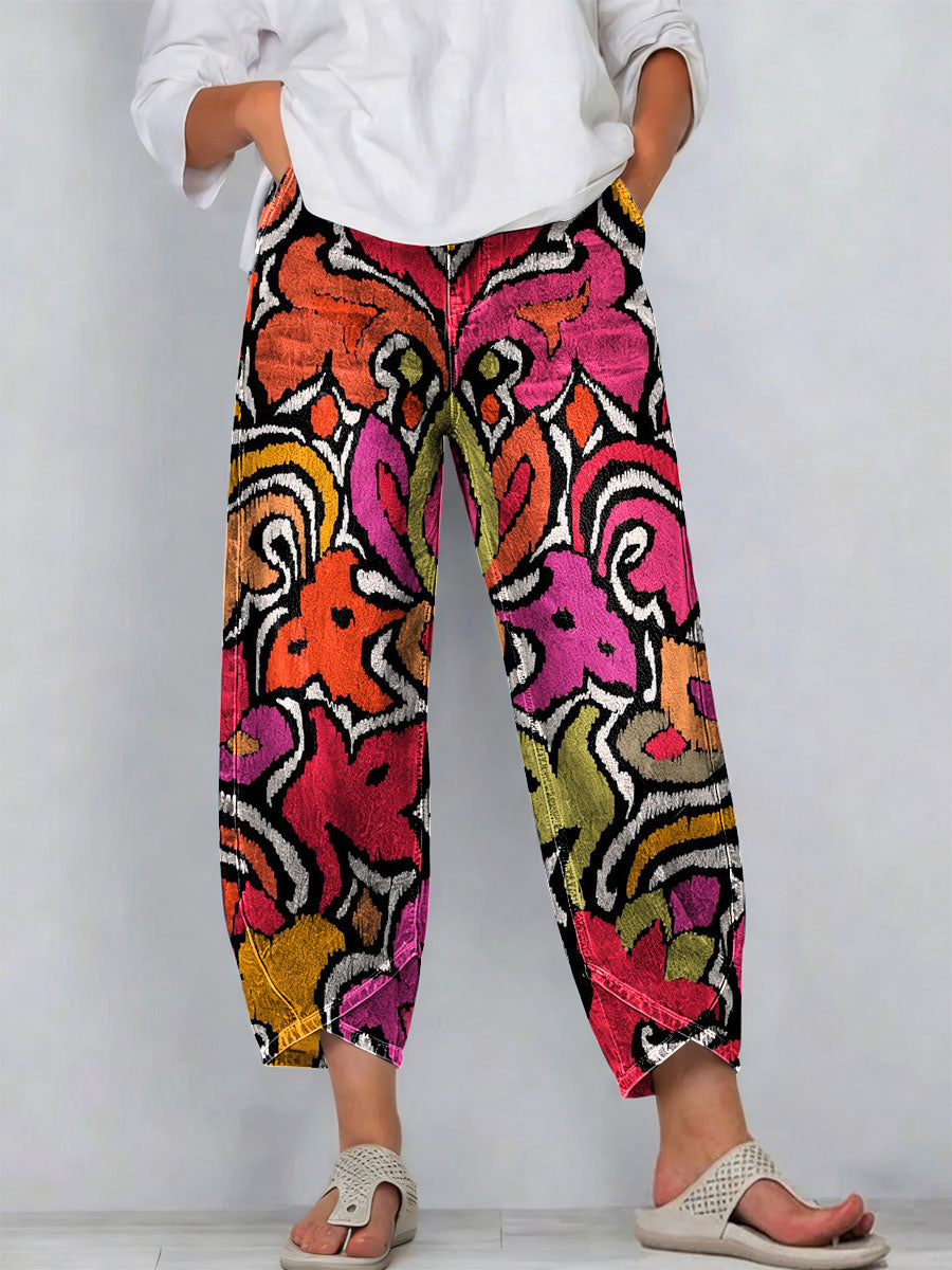 Women's Vintage Flowers Floral Patterns Art Prints Casual Denim Cotton Pants