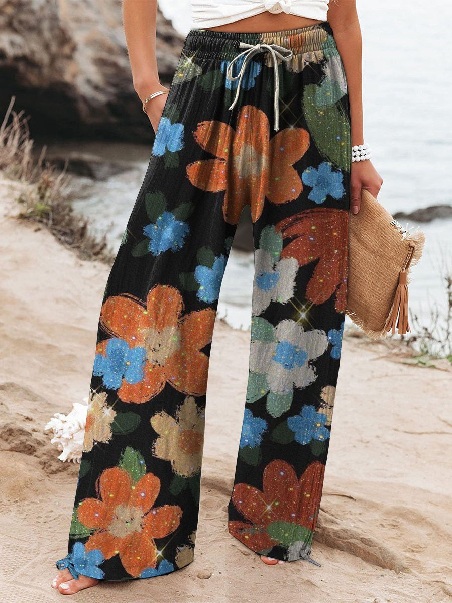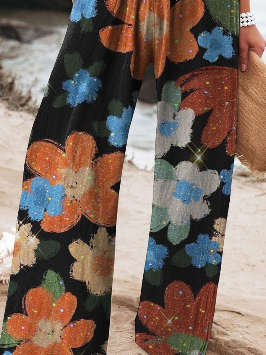 Bohemian Floral Art Loose Lace Wide Leg Pants