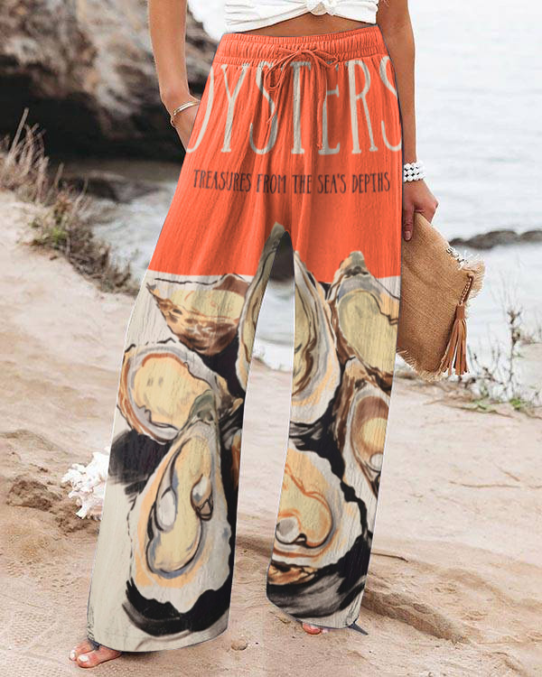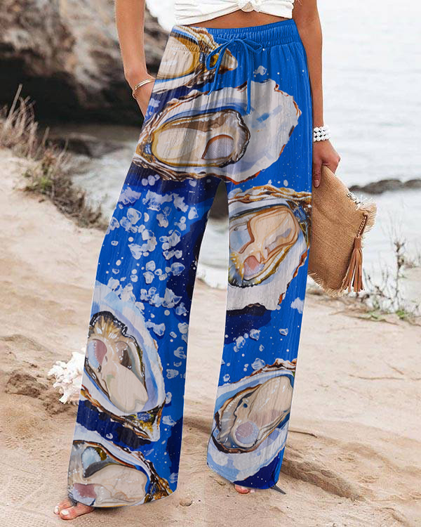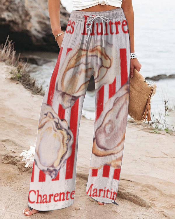 Les Huîtres Oyster Print Wide-leg Casual Pants