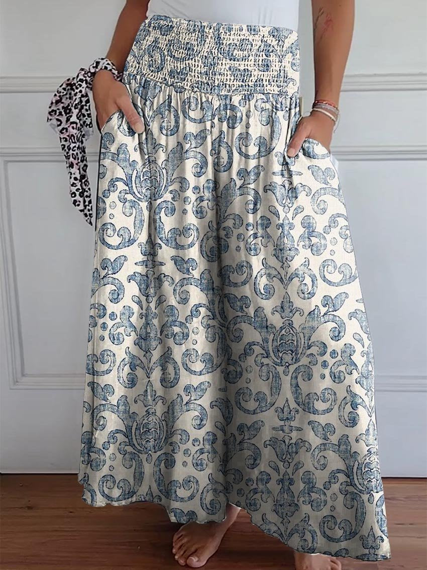 Women's Retro Floral Art Printed Cotton And Linen Casual Pants