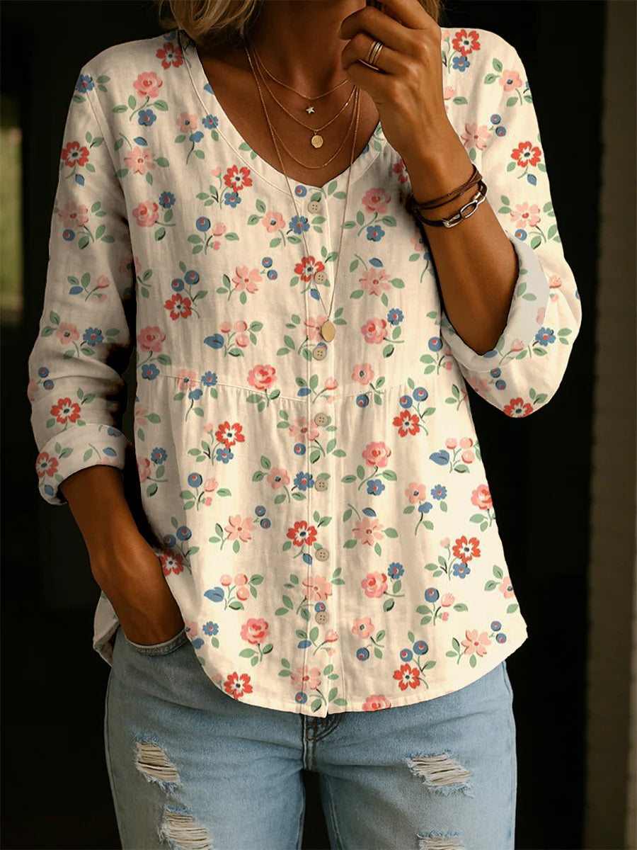 Women's Cute Flower Pattern Art Print Casual Cotton Shirt