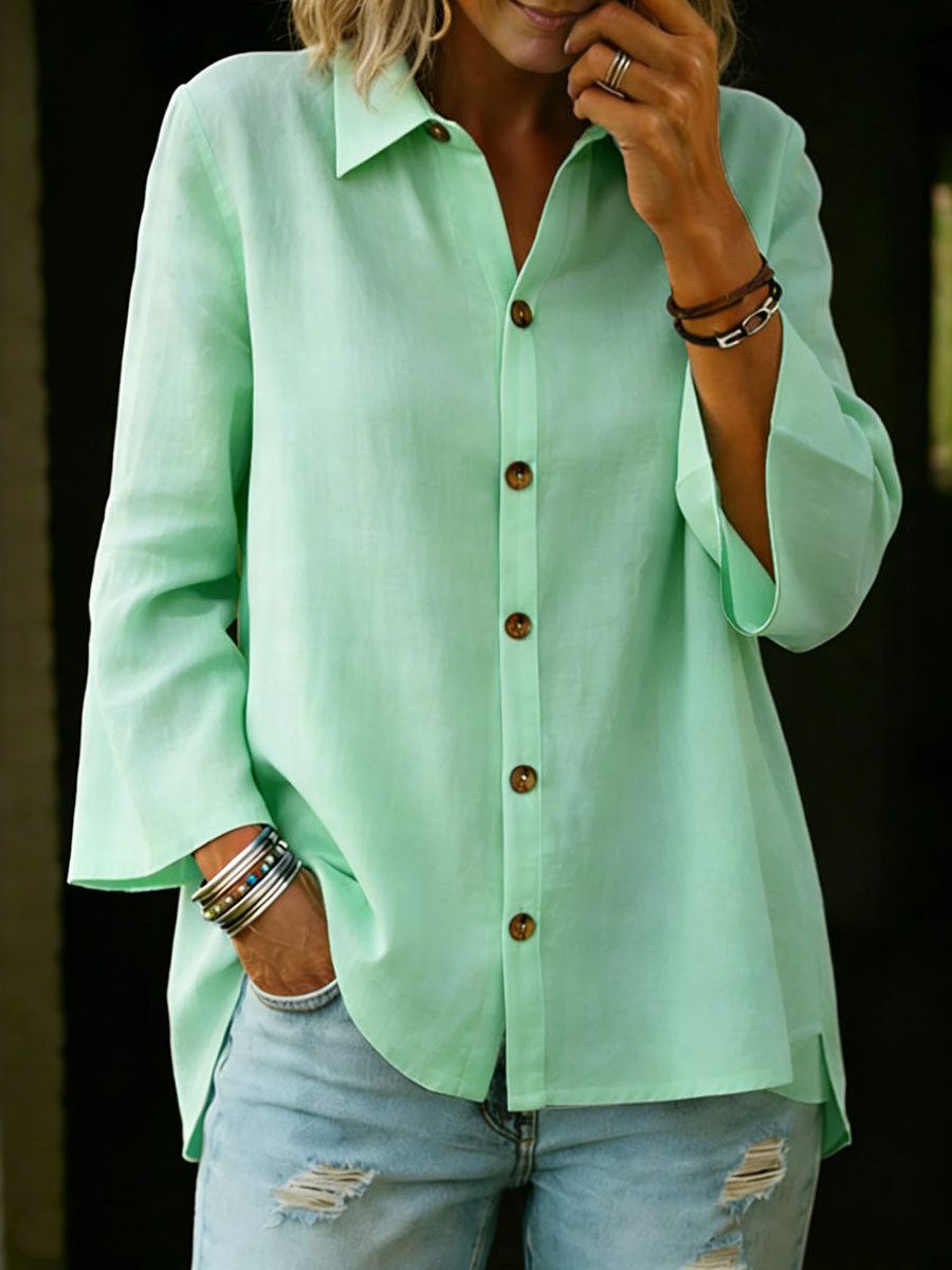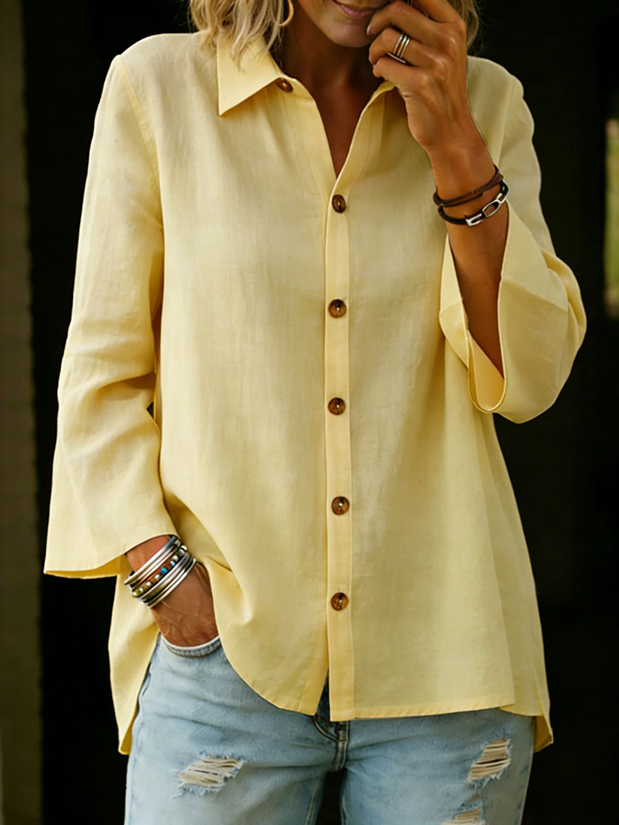 Women's Solid Color Collared Loose Casual Linen Cotton Shirt
