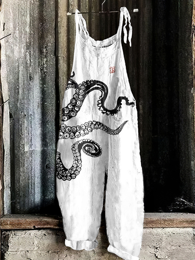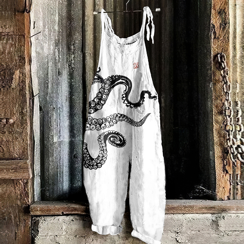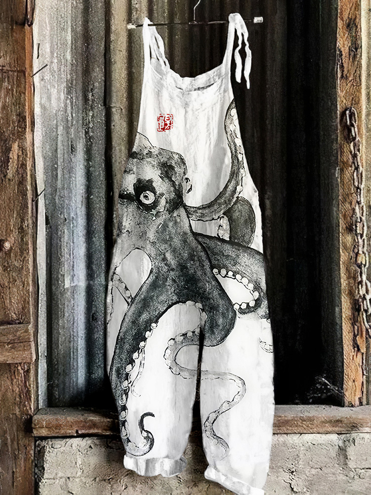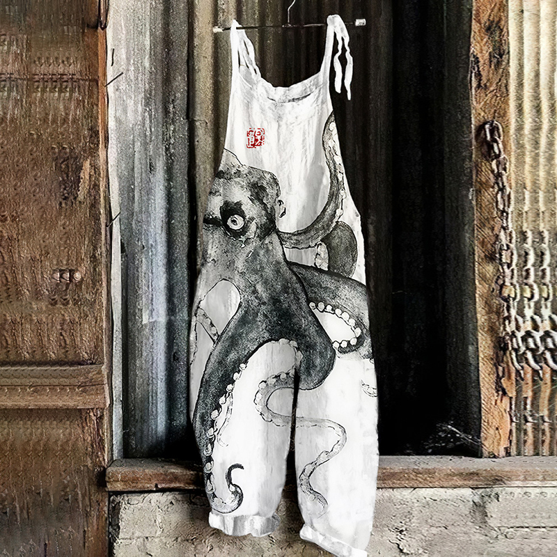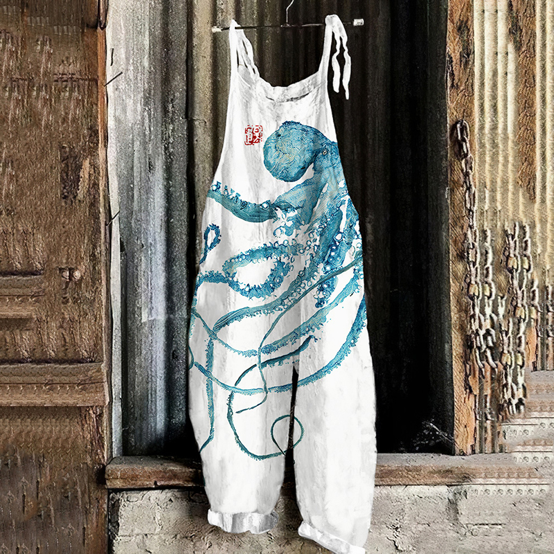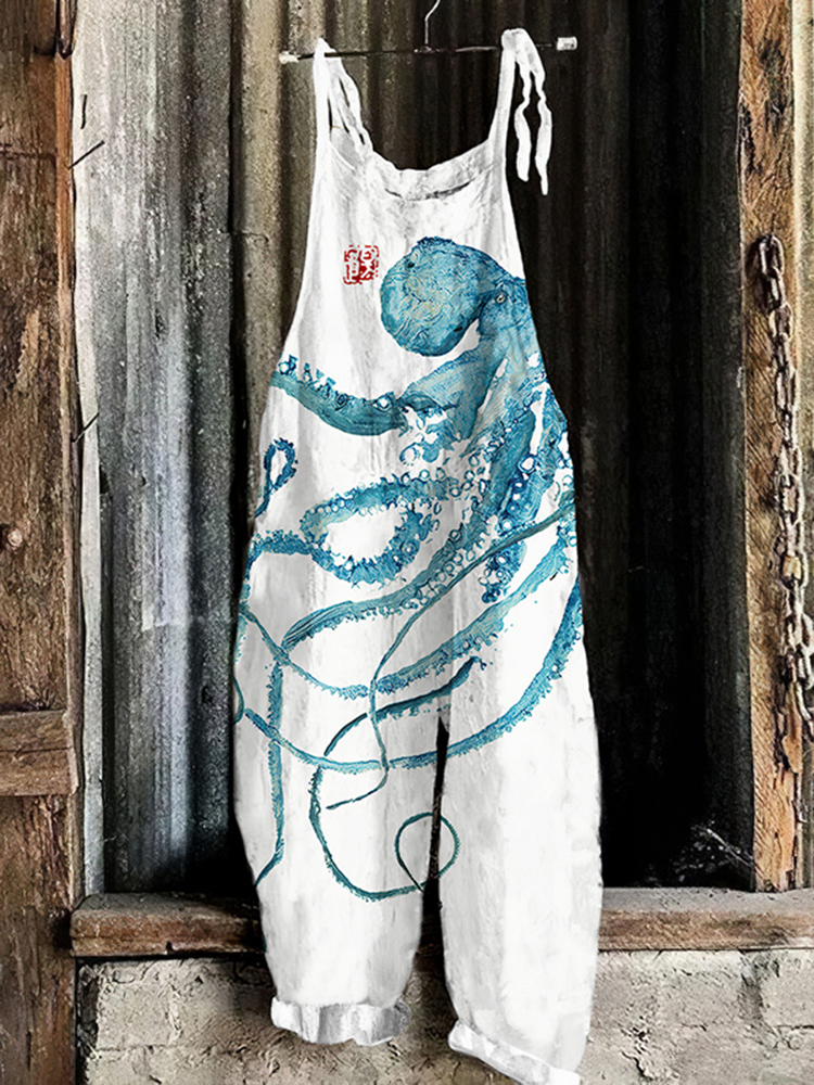 Colorful Octopus Watercolor Linen Blend Jumpsuit
