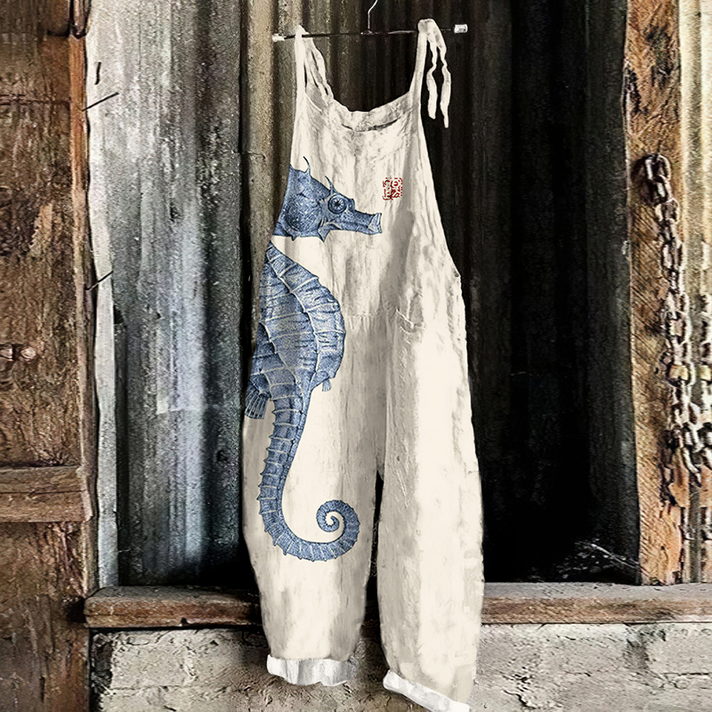 Vintage Seahorse Art Loose Casual Jumpsuit