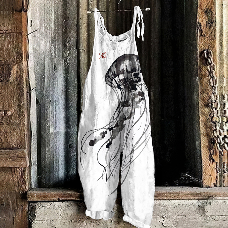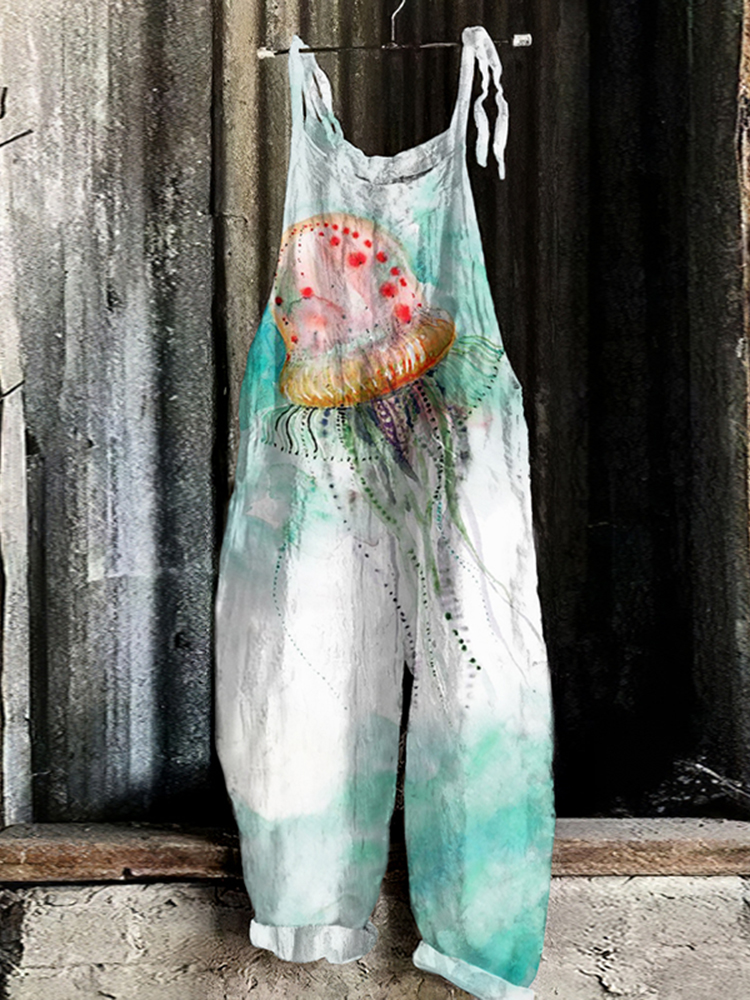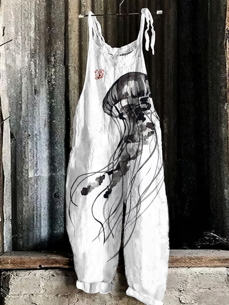 Vintage Jellyfish Art Loose Casual Jumpsuit